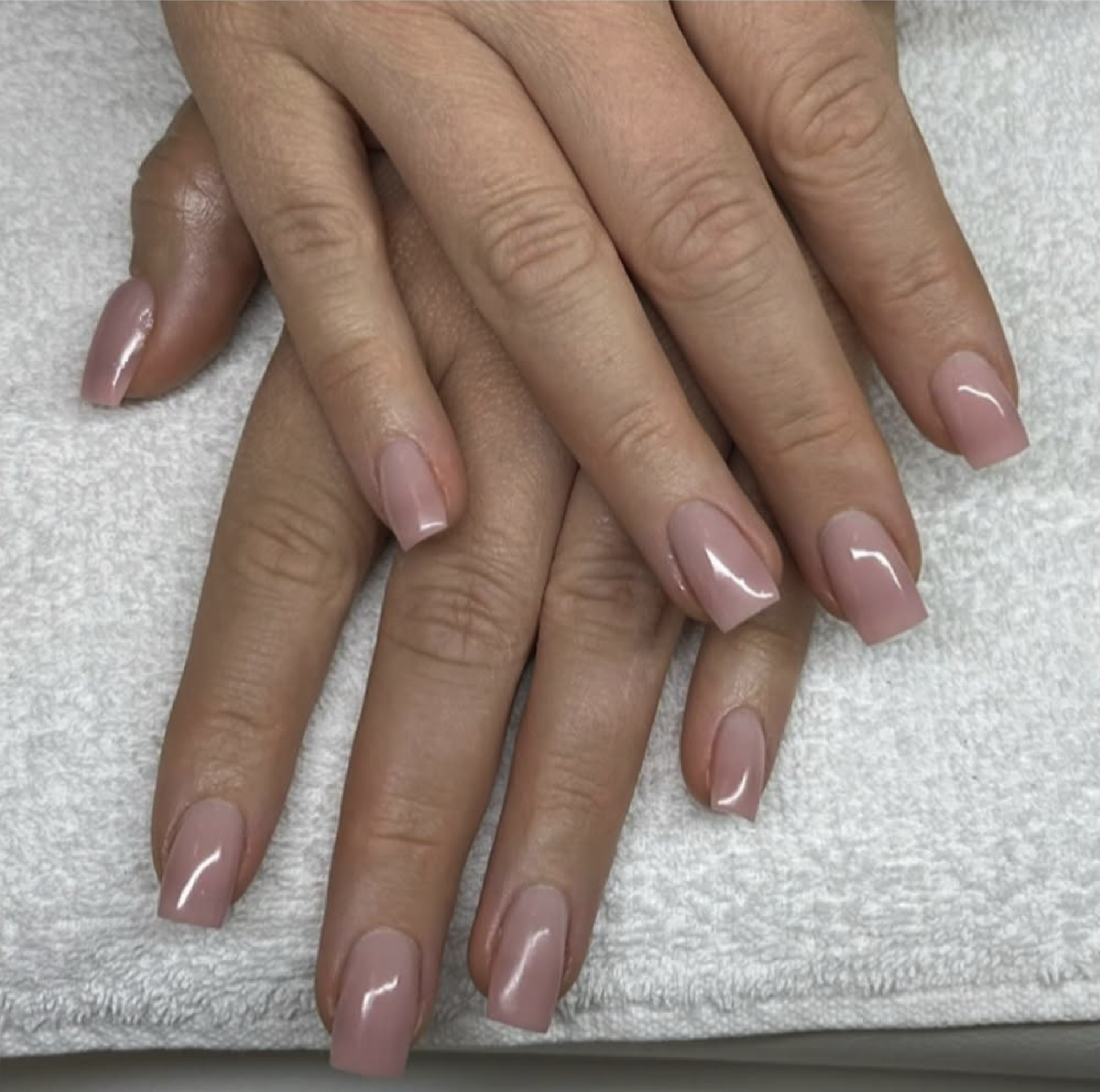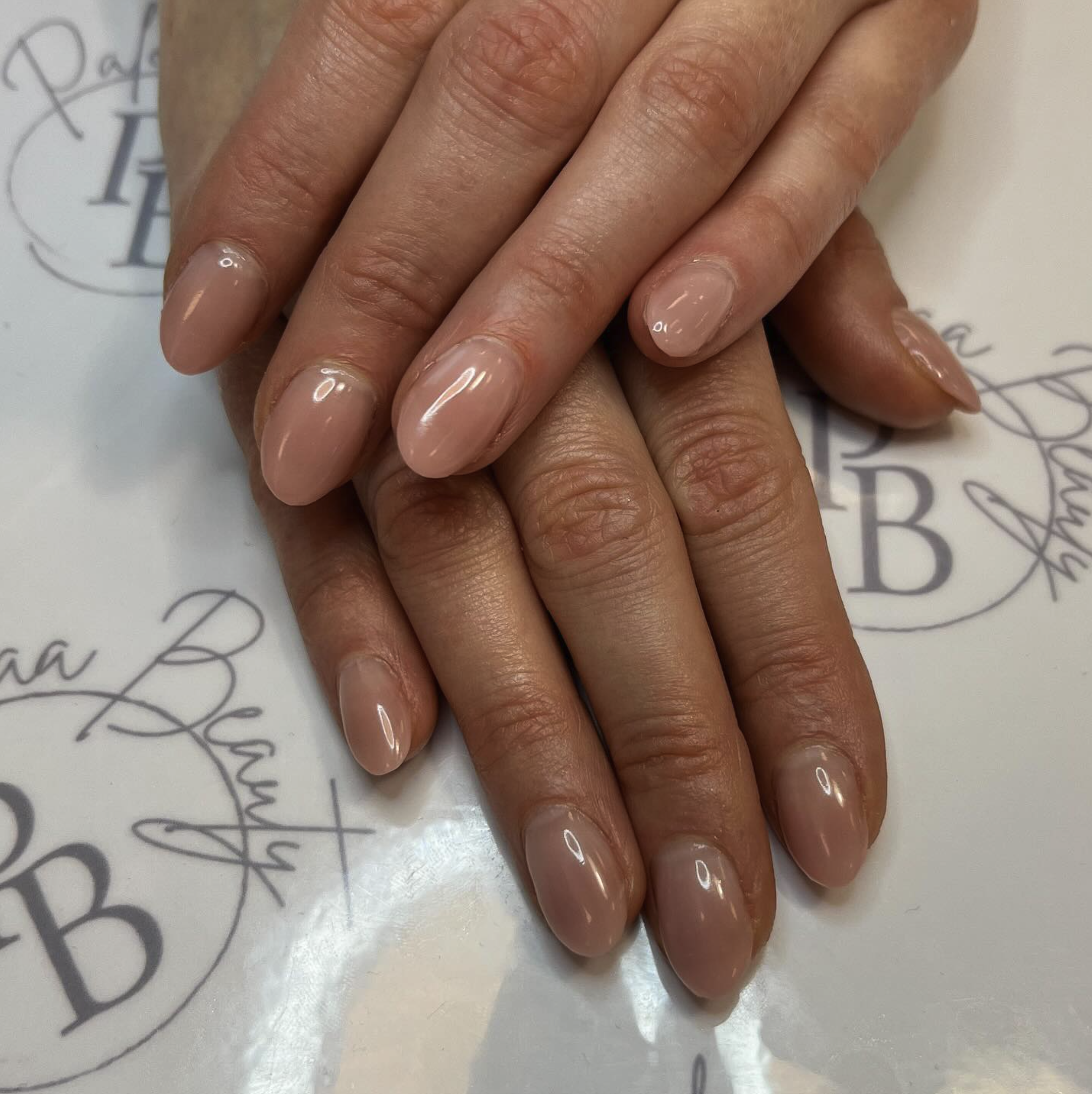 Vid förstärkning används en klar eller rosabeige gelé som appliceras på nageln för att stärka den och skapa en naturell eller färgad finish. Behandlingen avslutas med lätt vård av nagelband och olja för extra glans. Resultatet blir jämna, vackra naglar som håller sig starka och stilrena i flera veckor.