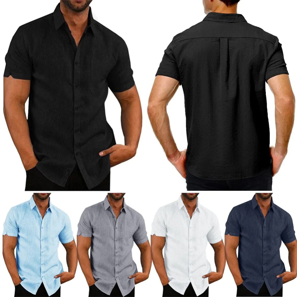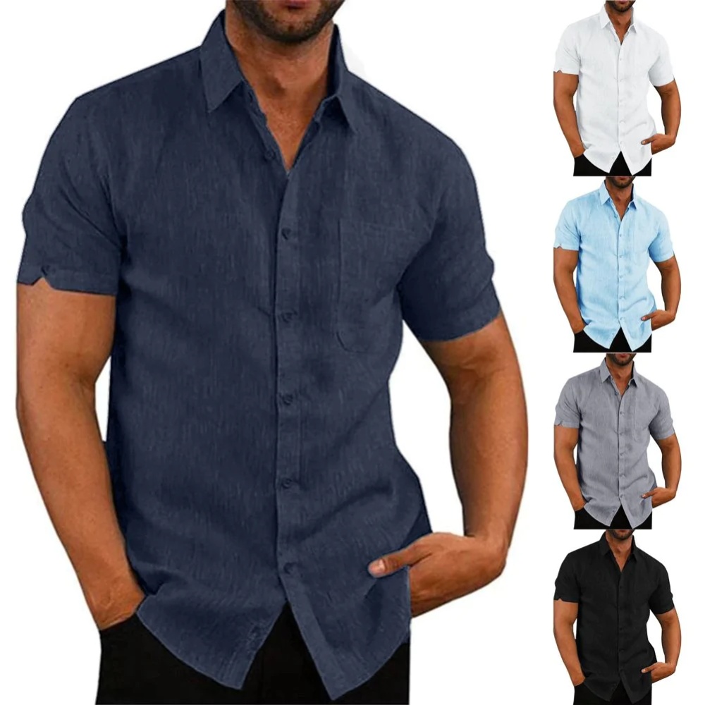 Denna kortärmade linneskjorta är ett måste i garderoben! Skjortan har en klassisk krage, bröstficka och luftig passform – perfekt för varma dagar. Tillverkad i en bekväm linnemix, som kombinerar stil och komfort. Finns i svart, vitt, blått och marinblått.