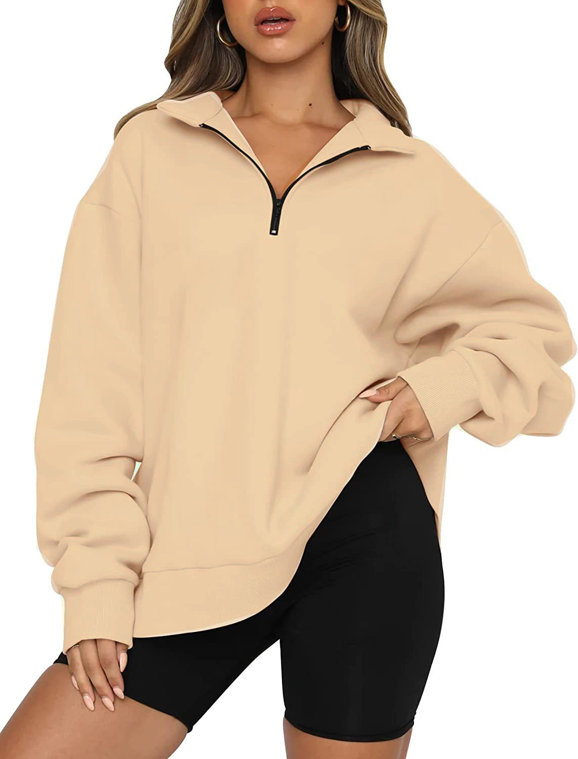 Trendig och bekväm oversize-sweatshirt med halv dragkedja, perfekt för vardag eller mysiga stunder