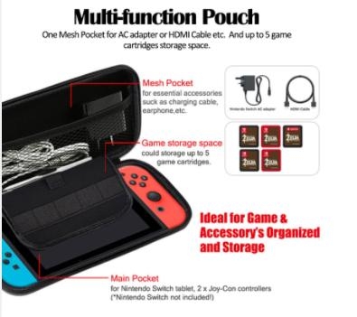 Bra skydd för din konsolPraktisk förvaringsväskPlats för att förvara dina spelUtrymme för tillbehör för din Nintendo SwitchTillverkat av skyddande material av hög kvalité Slimmad och enkel designTredje parts tillverkat