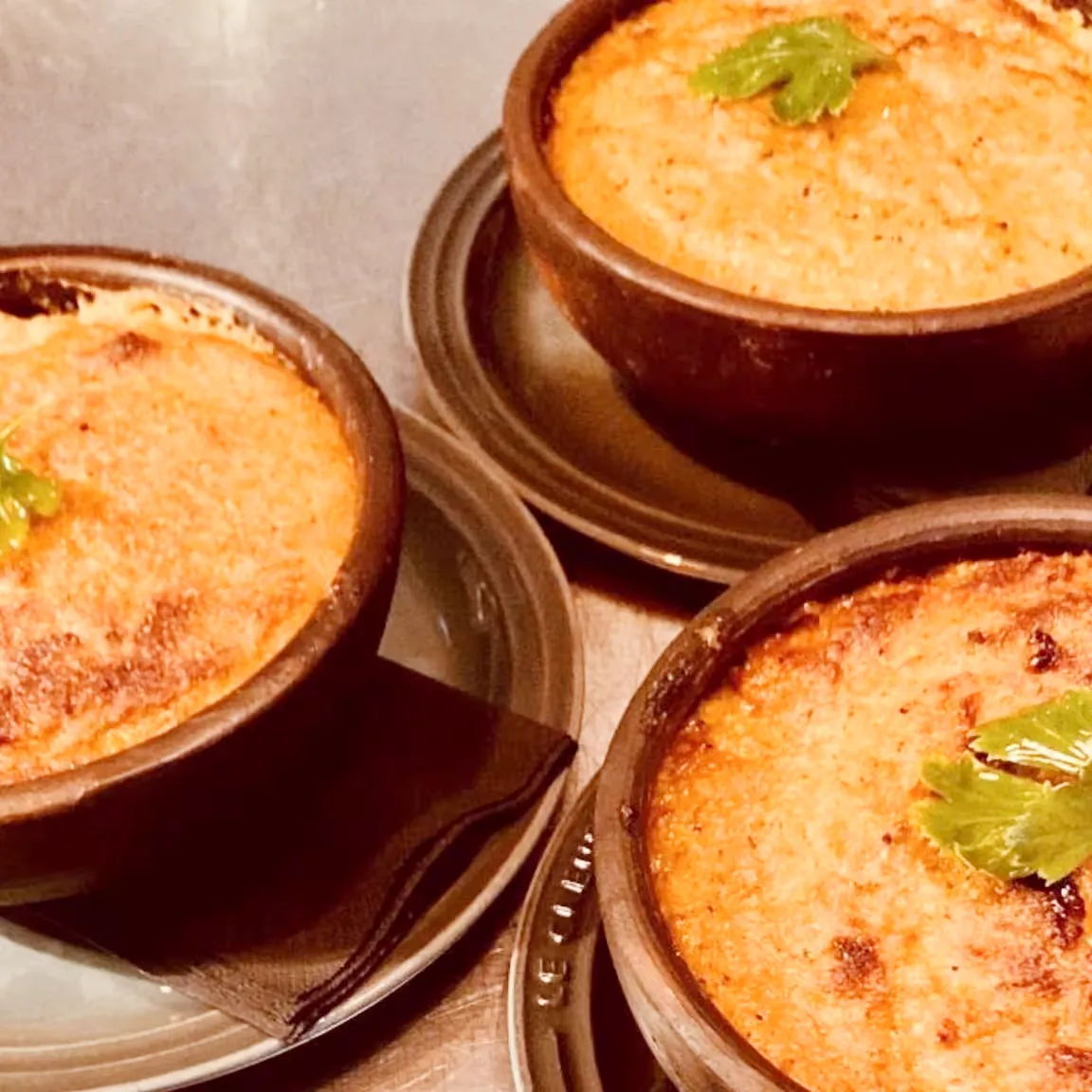 Gratinerad ost toppad med chimichurri och pinjenötter