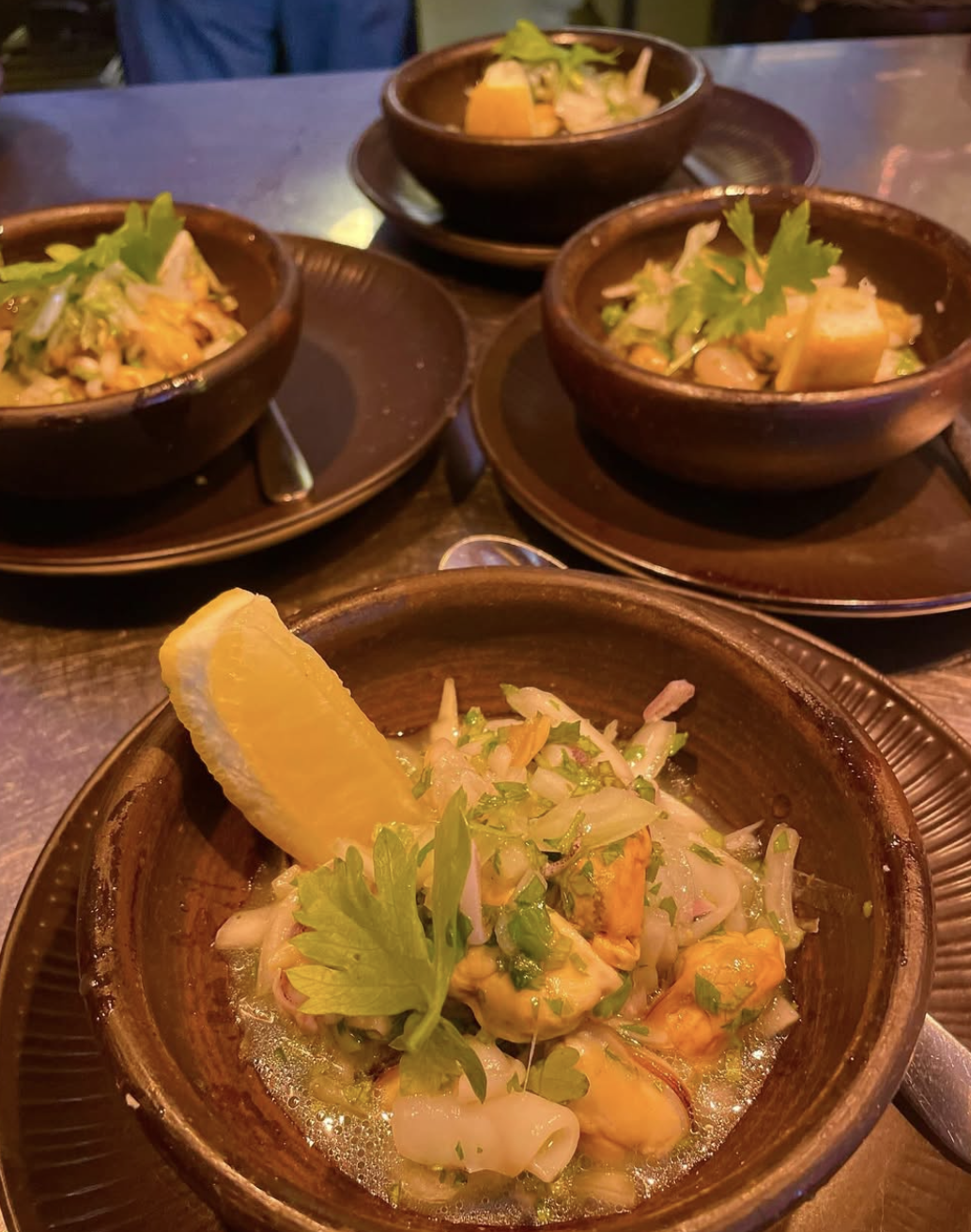 Ceviche på tonfisk, en klassisk rätt från Påskön. Serveras med citron, mango, vitlök, lök, koriander och chili
