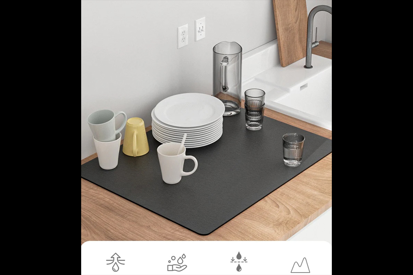 Praktiskt diskmatta som är vattenabsorberande, snabbtorkande och halkfri. Fyra olika storlekar att välja mellan - kan trimmas till den storlek du behöver. Välj mellan vitt och grått.