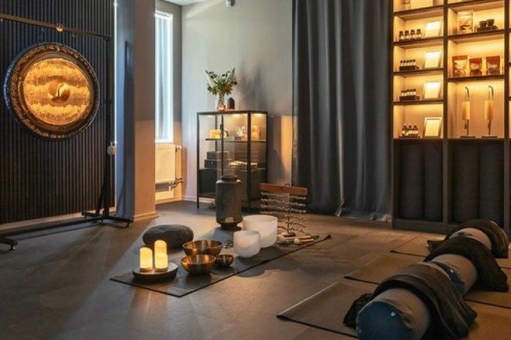 Slappna av och kom till ro i en lugn och inbjudande atmosfär, omgiven av det varma skenet från levande ljus och den svaga, avslappnande doften av lavendel. Ljudvila, eller sound healing, är för den som önskar varva ner och förbereda sig för en god natts sömn.