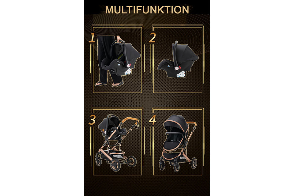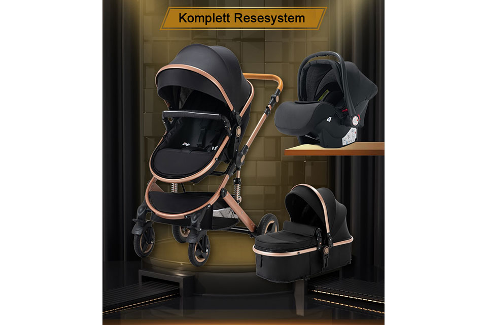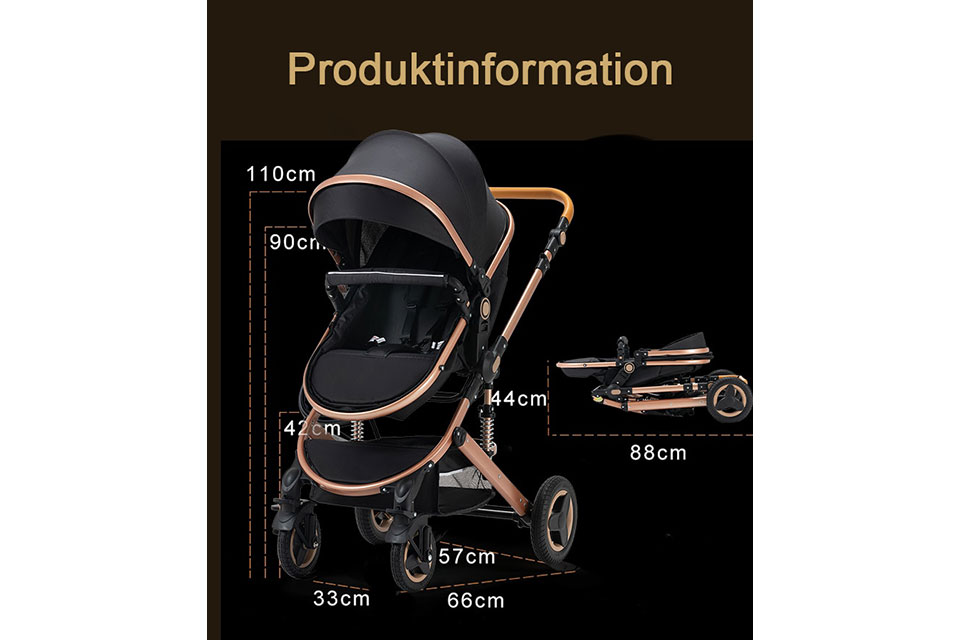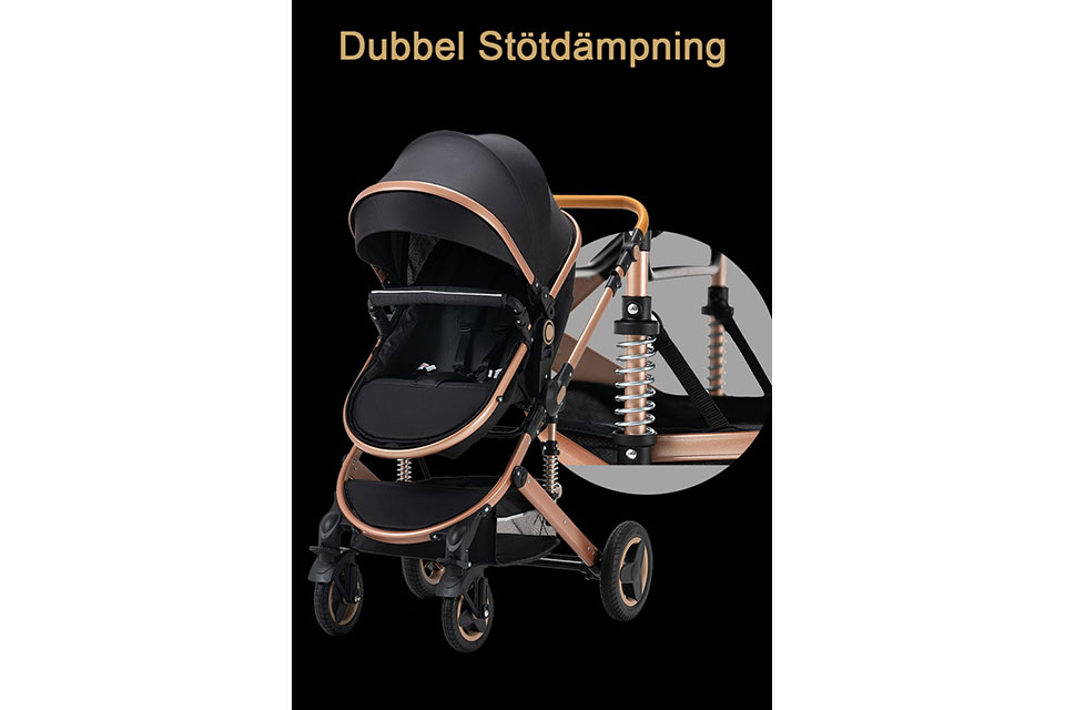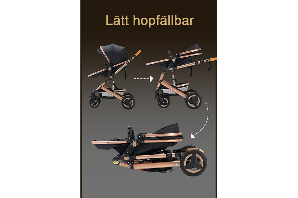 Upptäck denna moderna och snygga barnvagn! Barnvagnen är justerbar till 3-läges säte, varmt bomullstyg, avtagbar vagga och armstöd. Den har även enkelfotbroms och enhandsfällning.