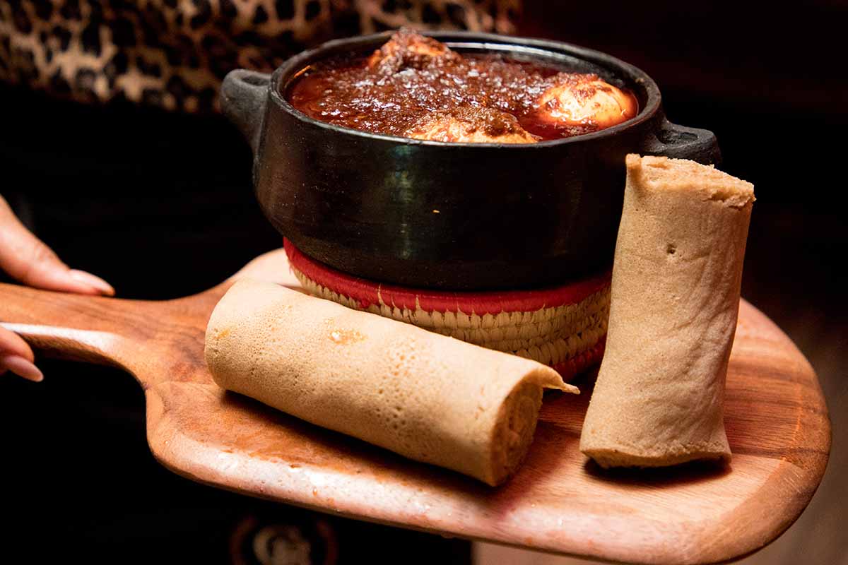 Restaurang Jebena bjuder på en äkta östafrikansk matupplevelse där injera, det traditionella surdegsbrödet från Eritrea och Etiopien står i centrum. Här serveras smakrika grytor och tillbehör, tillagade från grunden med noga utvalda råvaror. På menyn finns både kött-, vegetariska och veganska alternativ.