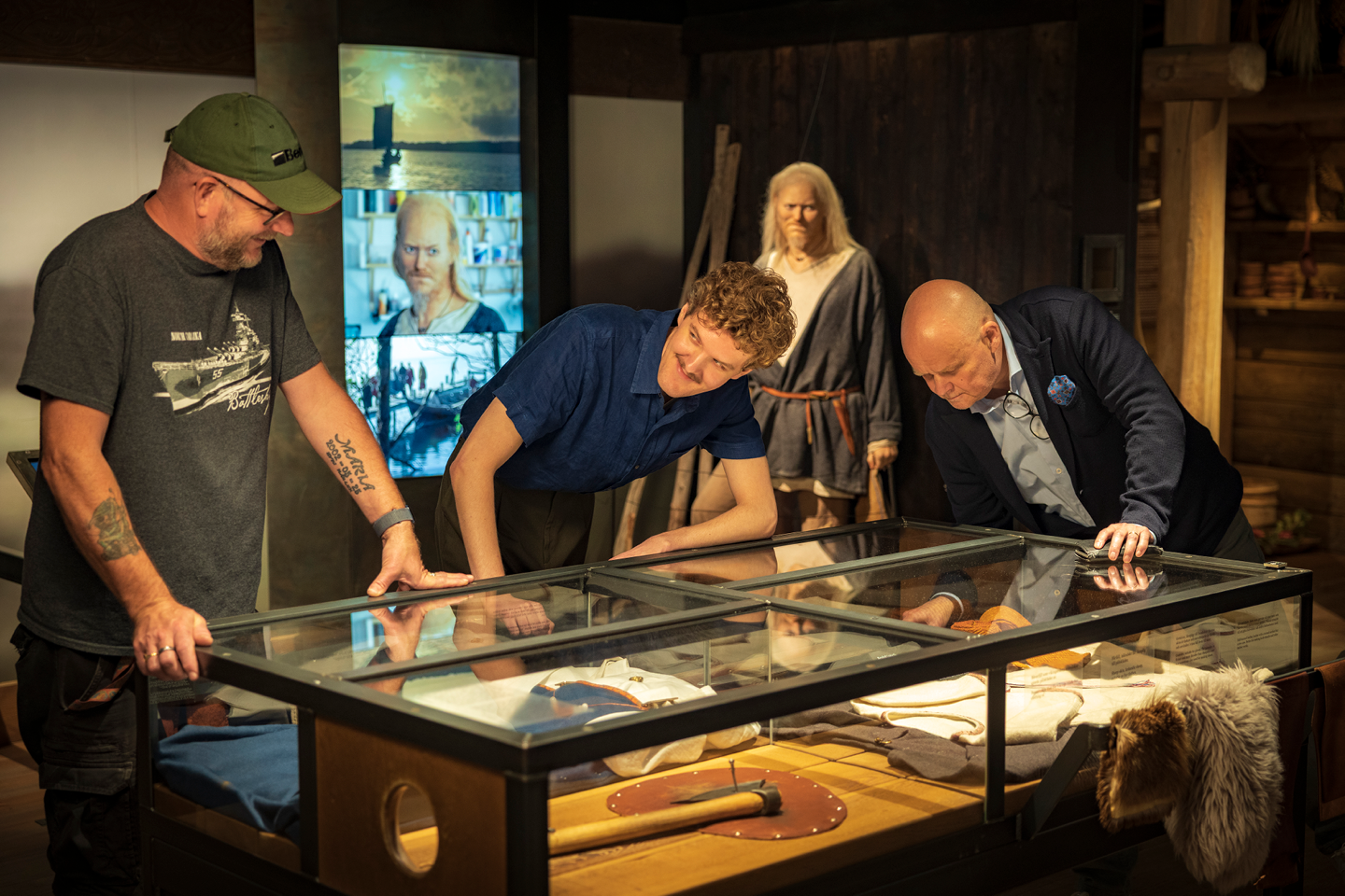 Här får du följa berättelserna om vikingatidens män, kvinnor och barn och inte bara de som seglade över haven, utan även de som levde och arbetade hemma på gårdarna.