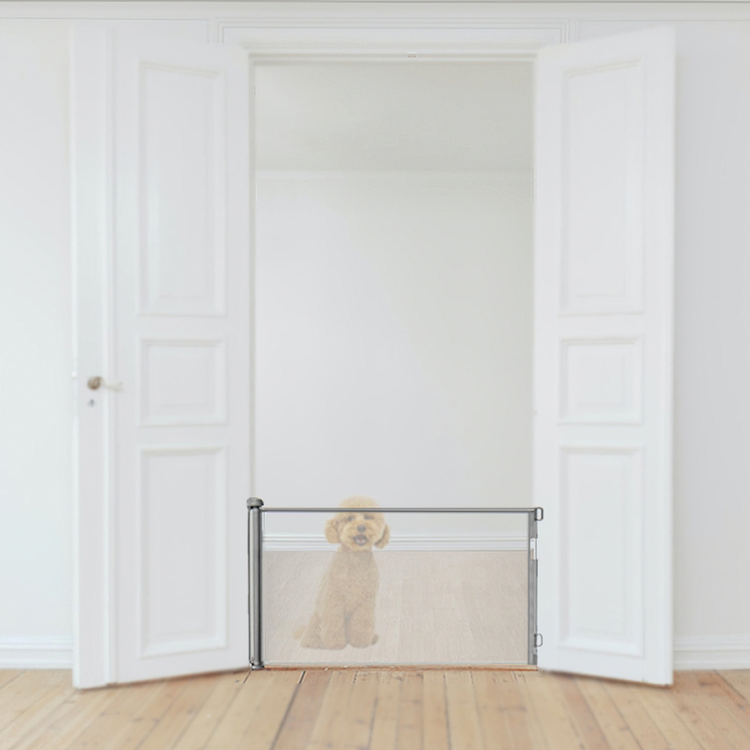Skapa trygga zoner i hemmet med en stilren och funktionell rullgrind. Den är perfekt för att begränsa åtkomst till exempelvis trappor eller dörröppningar, och passar särskilt bra för dig med husdjur. Den utdragbara konstruktionen gör det enkelt att justera grinden efter utrymmet, och när den inte används rullas den smidigt undan.