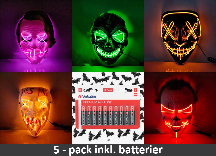 Var coolast på Halloween festen med en lysande LED mask. Detta kit innehåller en mix av 5st läskiga masker.