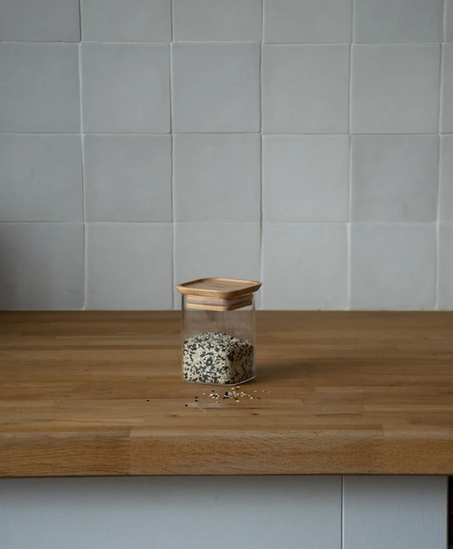 Håll ordning i köket med detta 2-pack glasburkar med bambulock. Burkarna rymmer 240 ml eller 320 ml och passar perfekt för kryddor, örter, frön, socker, nötter och andra torrvaror. Den stapelbara designen gör dem både praktiska och platsbesparande på kryddhyllan eller köksbänken, samtidigt som innehållet hålls fräscht.