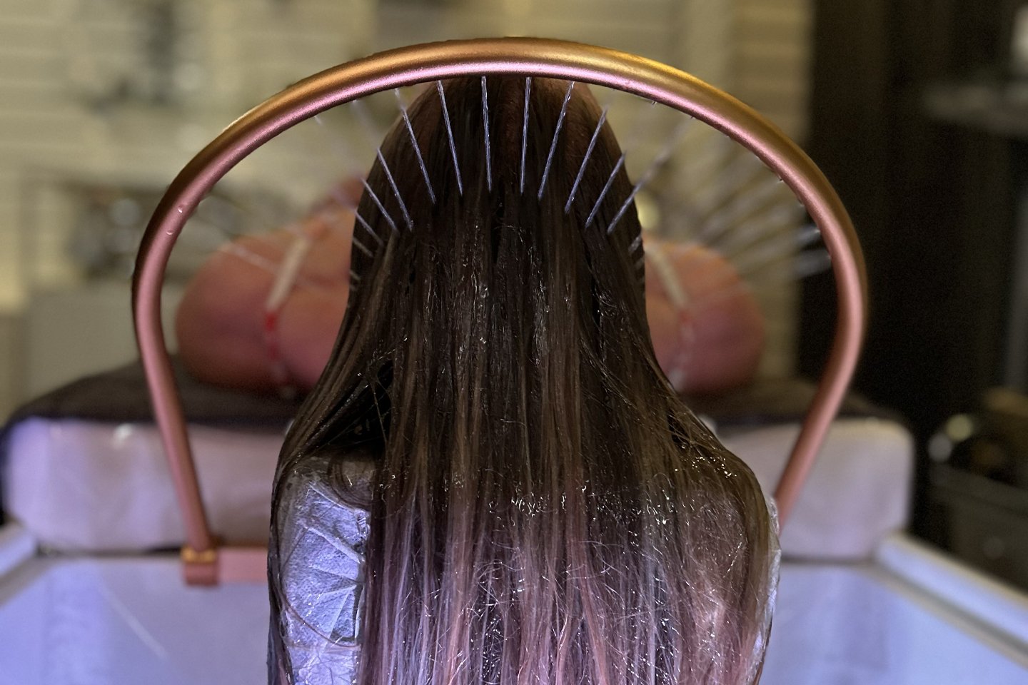 Därefter följer en avslappnande hårbottenmassage med specialverktyg som stimulerar blodcirkulationen och förbättrar näringsupptaget i hårsäckarna. Vid behov utförs en mild peeling för att rengöra hårbotten på djupet.