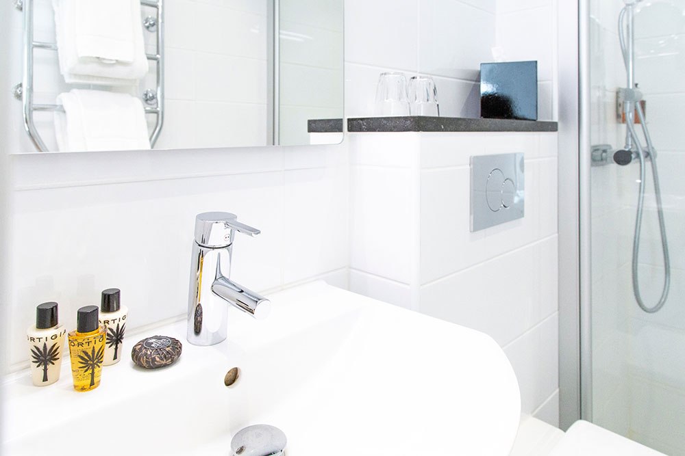 Rummen erbjuder en 160 cm bred säng, komfortkyla, arbetsyta, 32 tums-TV samt 1 fåtölj med bord. Rumsstorleken är mellan 16-20 kvm. Helkaklat badrum med exklusiva kroppsprodukter. Alltid gratis wifi samt 24-timmars bemannad reception. Rummen är rök och djurfria.