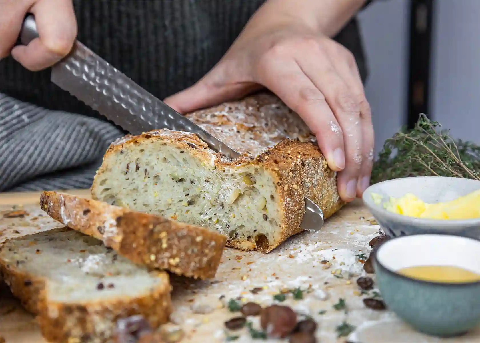 Om du vill skära igenom en hård yta utan att förstöra den mjuka insidan, är detta kniven för dig. Oavsett om det gäller frasigt bröd, tomater, frallor, vattenmelon eller ananas levererar Kotai brödkniv fina och exakta skivor tack vare det tandade bladet. Det tunna bladet på endast 1,8 mm ger precisa snitt utan att pressa sönder även de mest känsliga råvarorna – för att bevara smak och konsistens fullt ut.