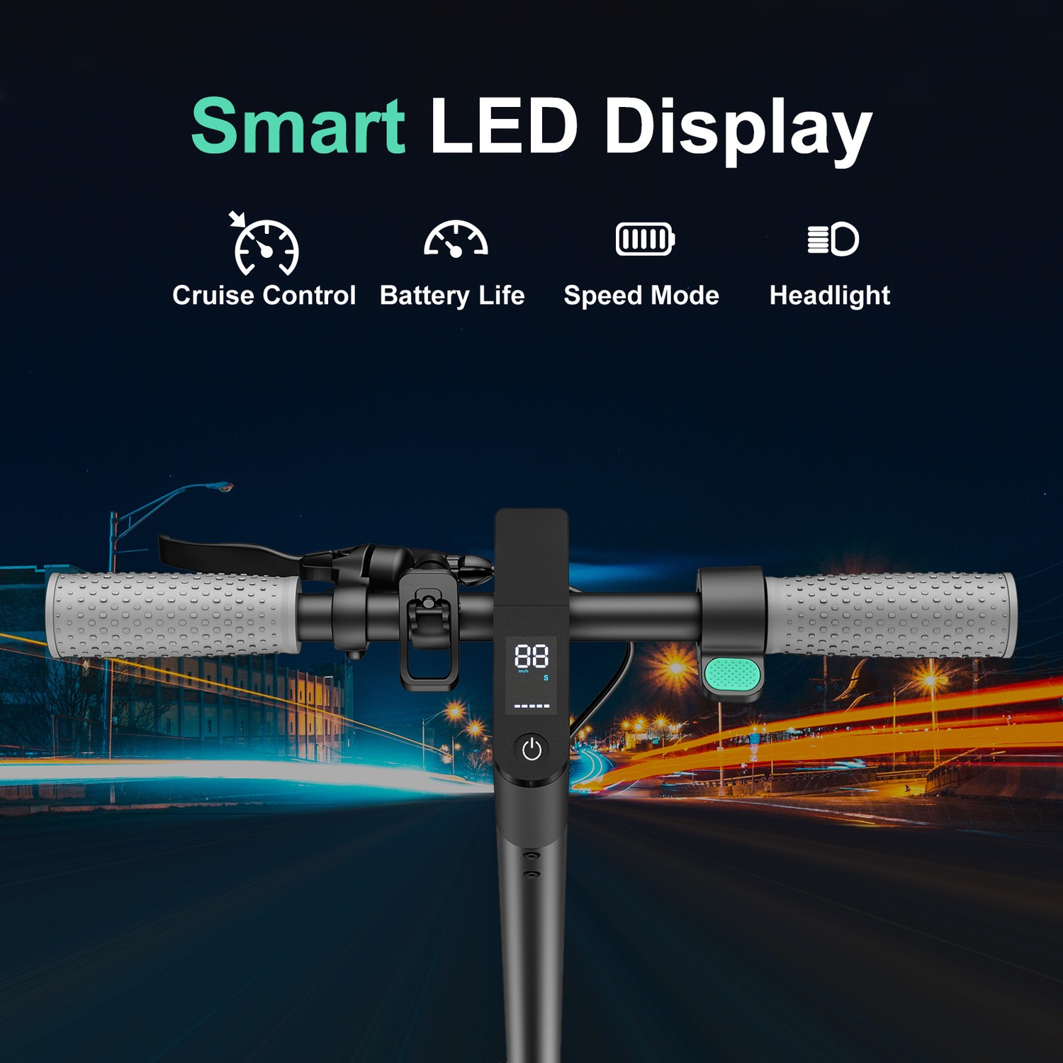 Scootern har både fram- och baklampa så att du kan se vart du åker och alla andra se dig. Den har även blinkande bakre bromsbelysning.