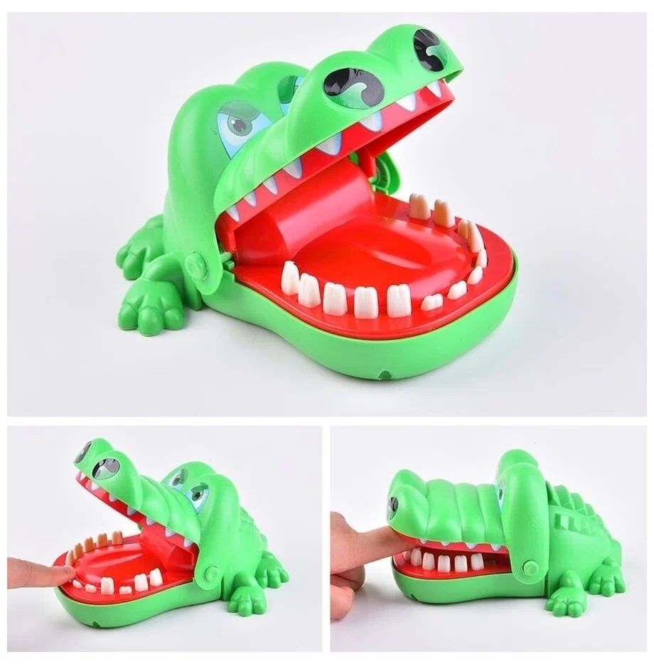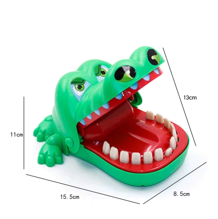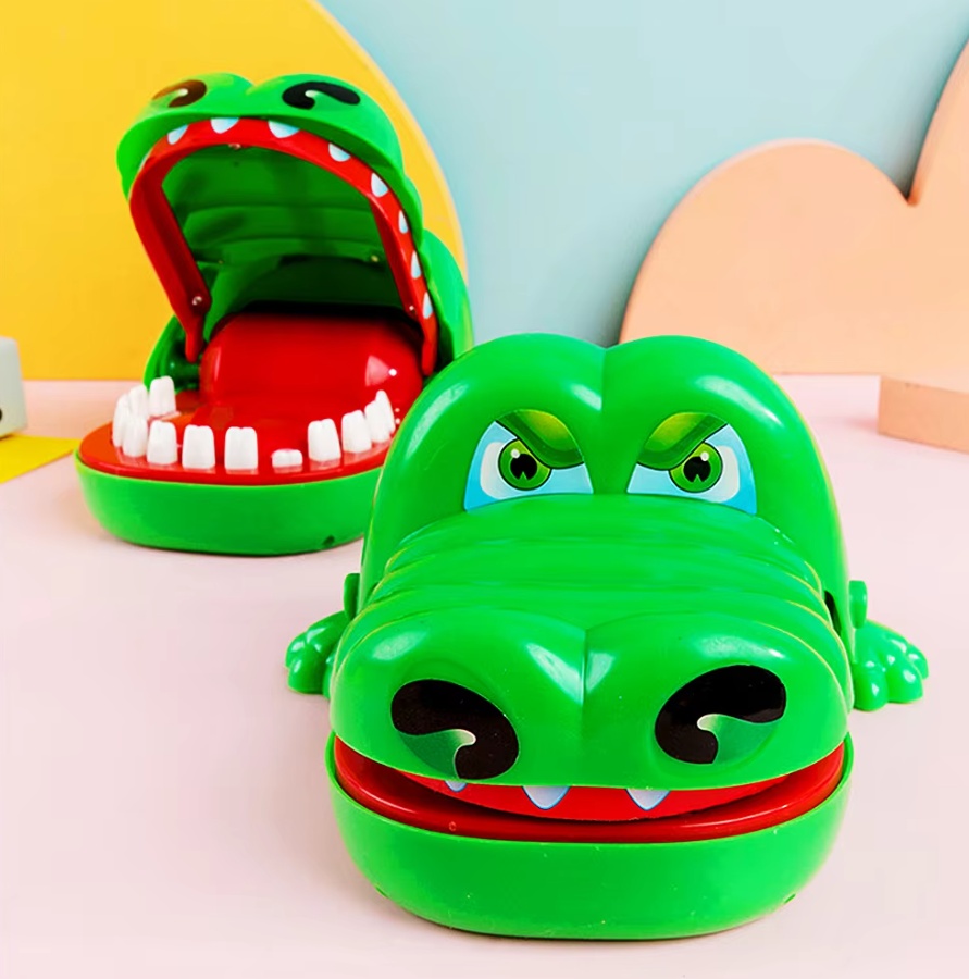 Utmana vänner och familj i det klassiska tandläkarspelet med krokodil! Spelet bjuder på både skratt och spänning när du försiktigt trycker på krokodilens tänder – men akta, en av dem är öm! Om du råkar trycka på den felaktiga tanden slår krokodilen igen munnen, och du är ute.