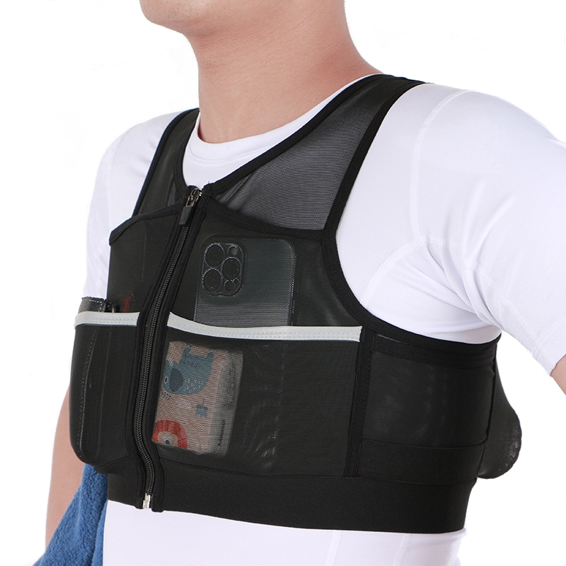 Reflekterande löparväst med nätfickor och blixtlås. Västen är gjord i ett elastiskt och bekvämt material. Reflekterande detaljer för ökad synlighet på natten. Den är lätt att ta på och av med