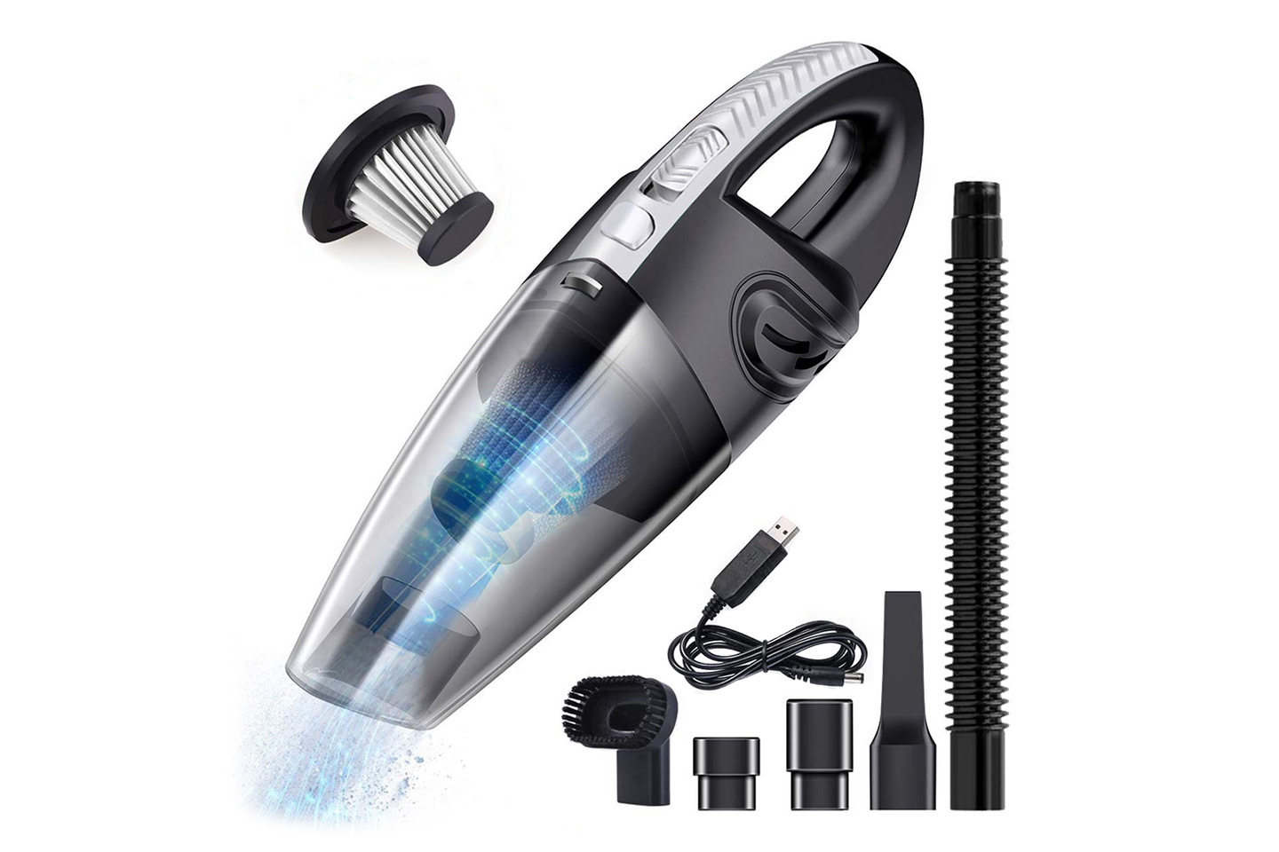 En handdammsugare är fantastisk, tänk att slippa dra fram den stora dammsugaren så fort det spills lite smulor eller annan smuts, perfekt ju! Den här dammsugaren är utrustad med HEPA-filter som samlar upp partiklar som normalvis släpps ut igen. Den har också en förlängningssladd för de mest svåråtkomliga utrymmena.