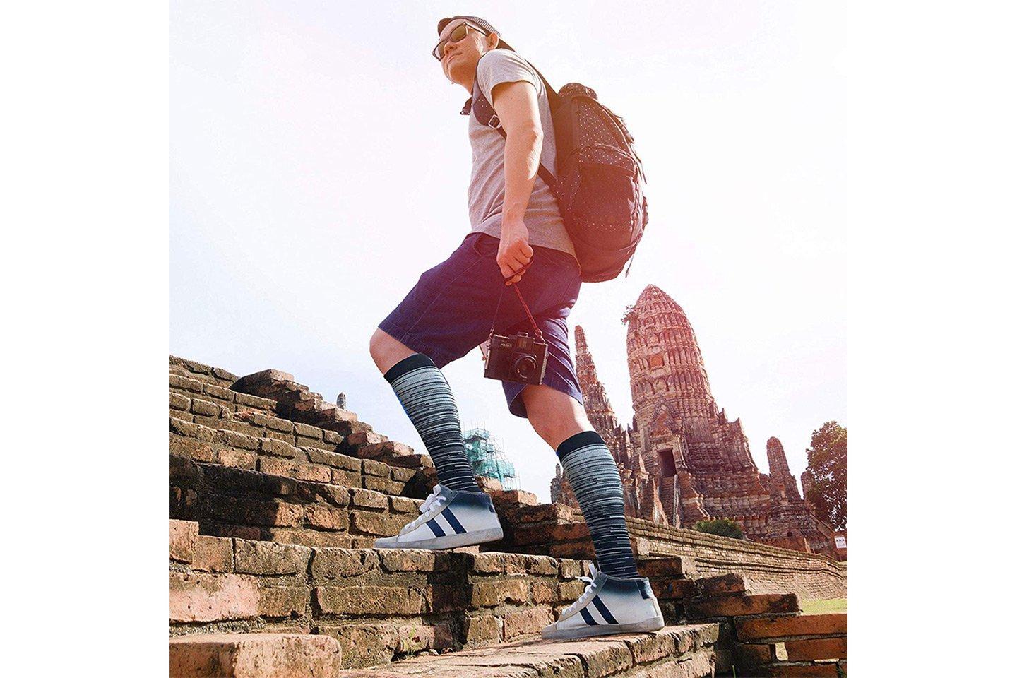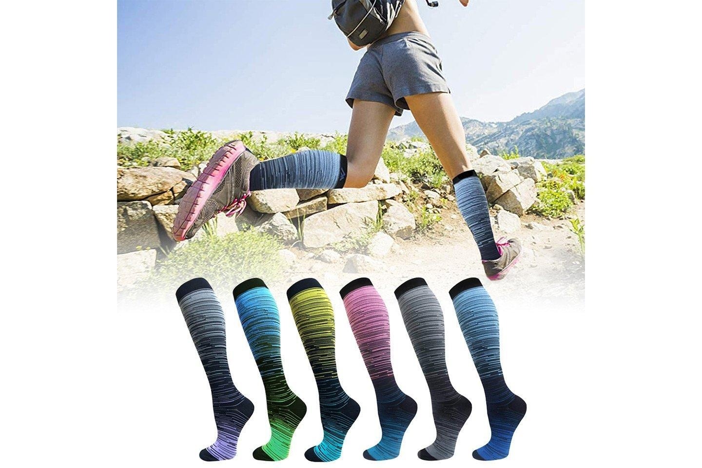 Stödstrumpor i slitstarkt tyg med förstärkta sömmar. De ger bra stöd för fötter och anklar. Minskar svullnad i fötter och ben och lindrar åderbråck. Perfekt att bära när du tränar eller är på språng!