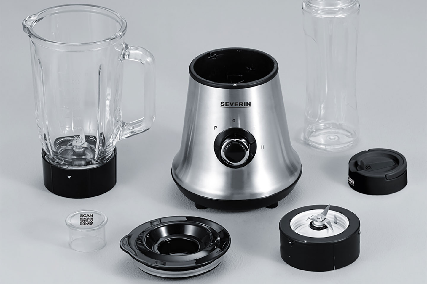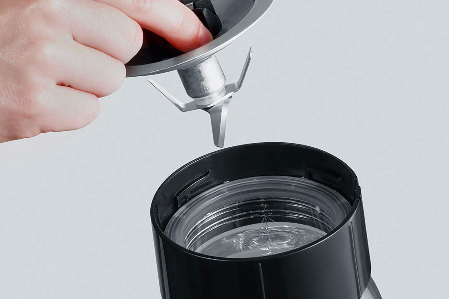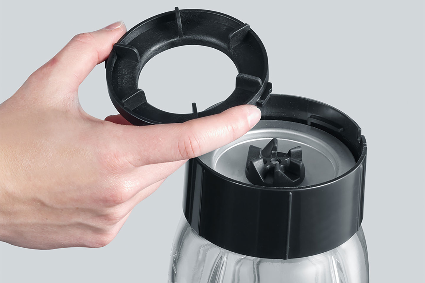 Stilren blender med en rostfri motordel och glaskanna med 1 liters kapacitet. Tilllsammans med mixern ingår en mix & go bägare som gör att du enkelt kan ta med dig smoothien när du är på språng.