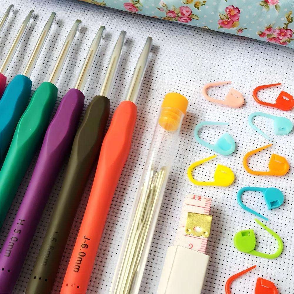 - Virkningskit med överflöd av tillbehör för att bli en professionell virkare