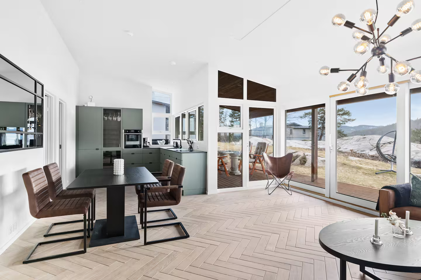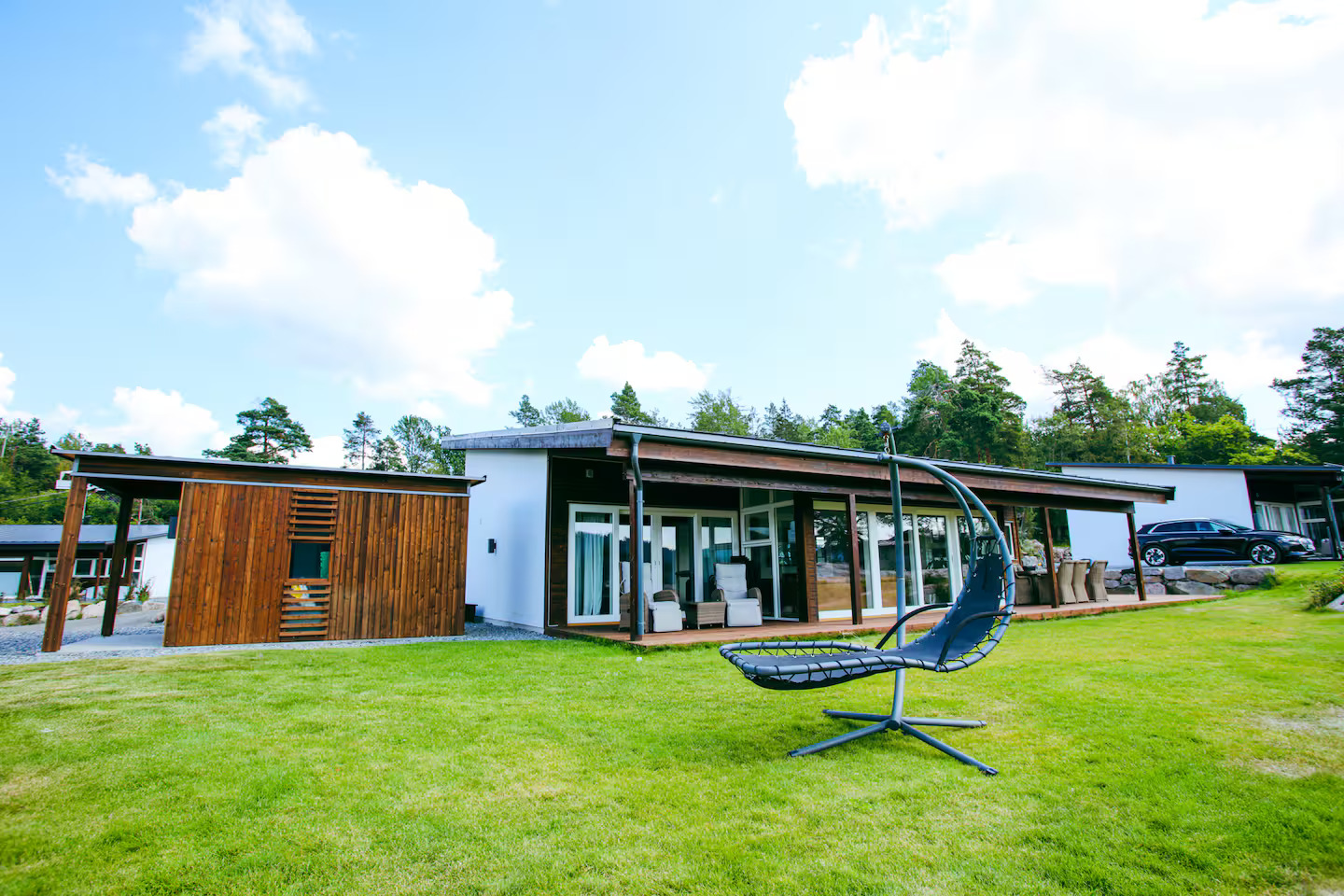 Nybyggd, elegant och modern fritidsbostad med stilren funkisdesign och vacker utsikt över Oslofjorden. Stugan ligger fantastiskt belägen längst in på idylliska Langebåt, med promenadavstånd till fina badmöjligheter. Här semestrar du nära hav och strand med sol från morgon till kväll.
