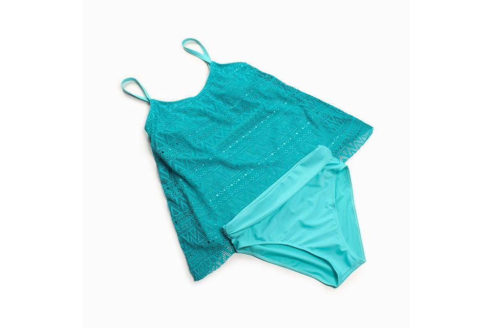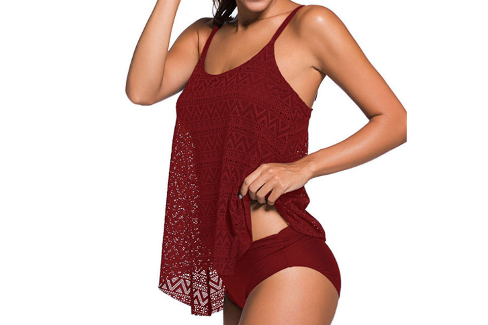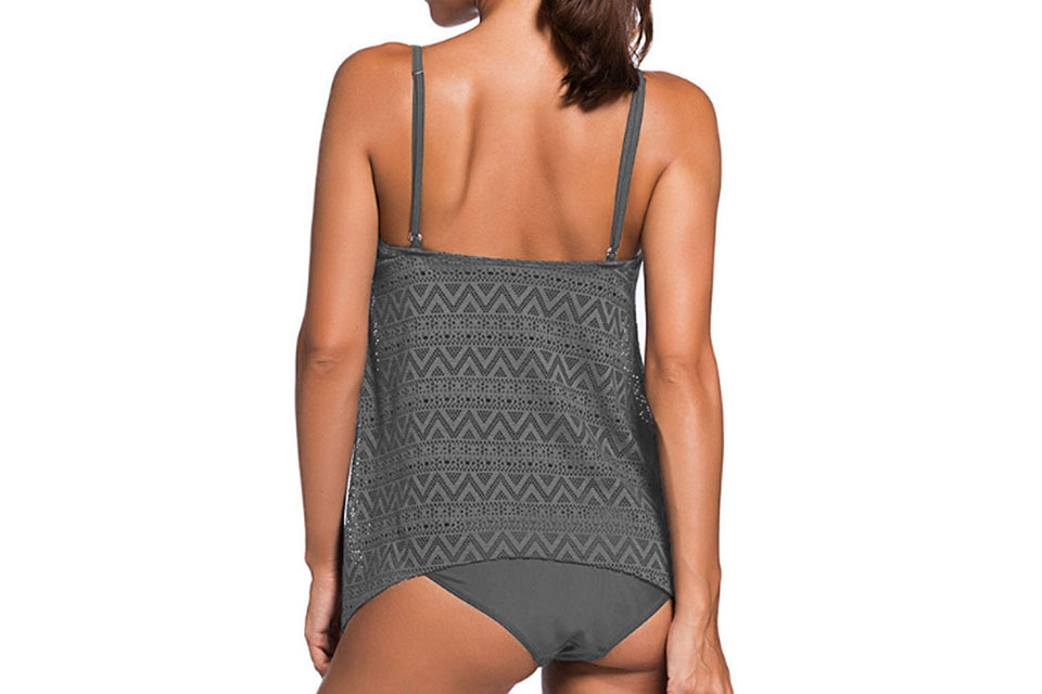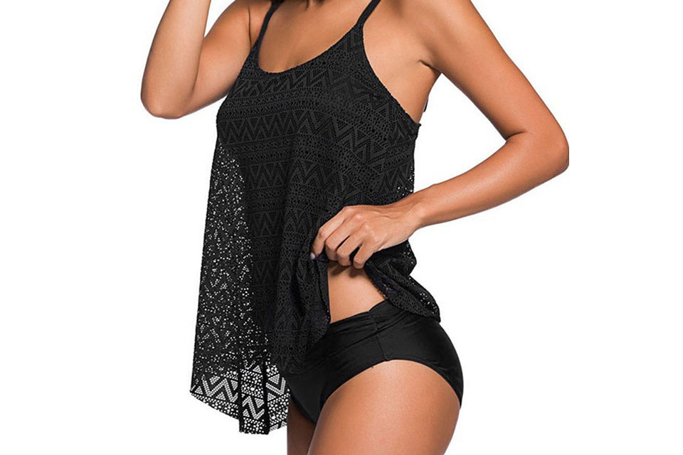 Framhäv din strandstil med detta fina set! Med eleganta spetsdetaljer och bekväm design kombinerar detta set stil med bekvämlighet.