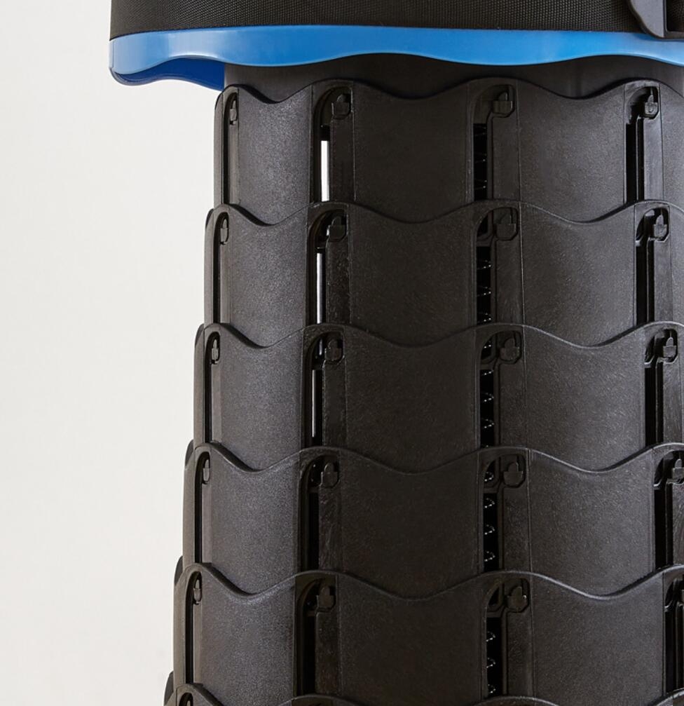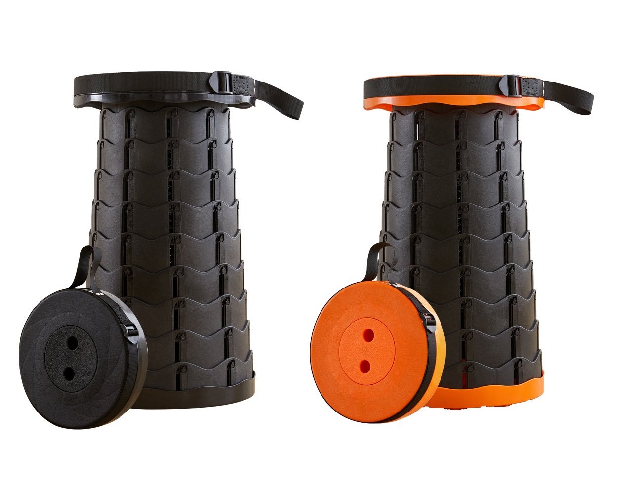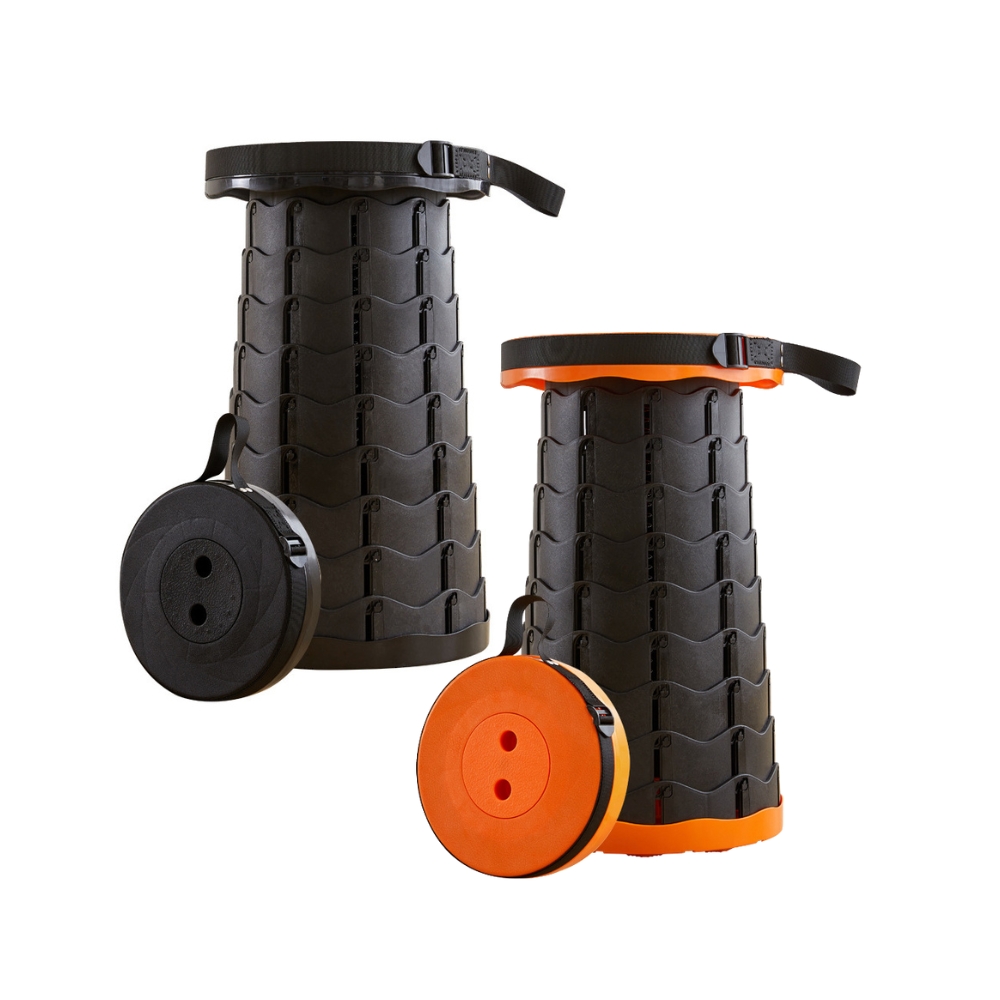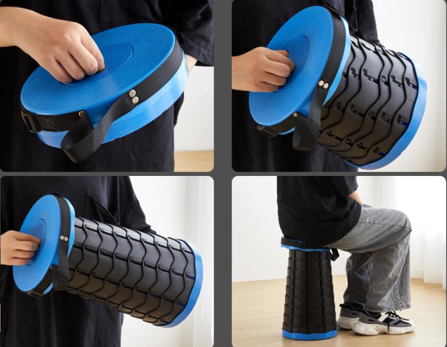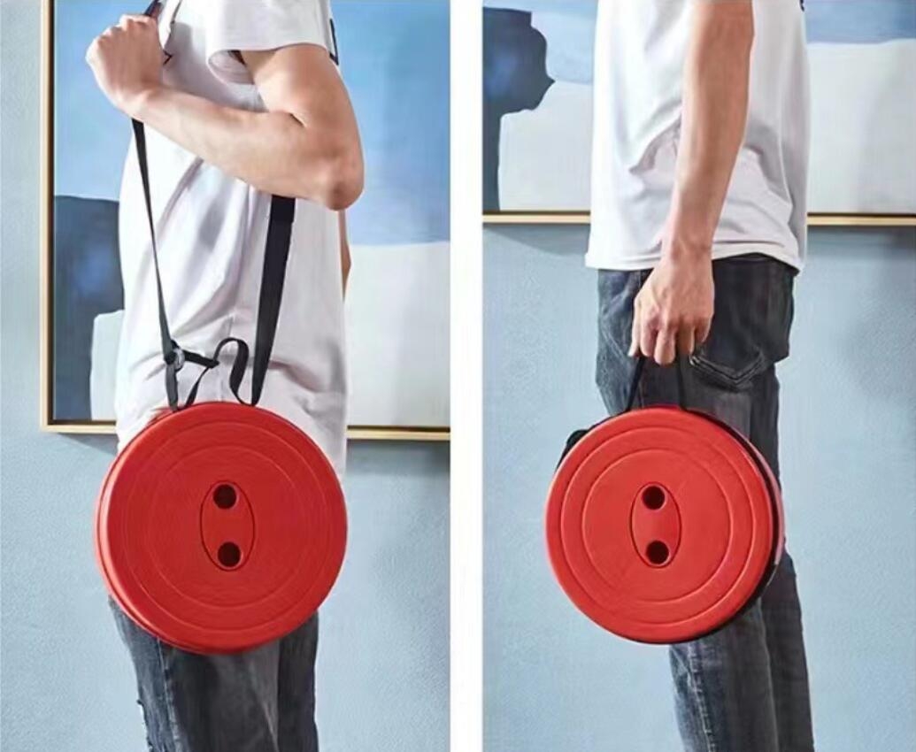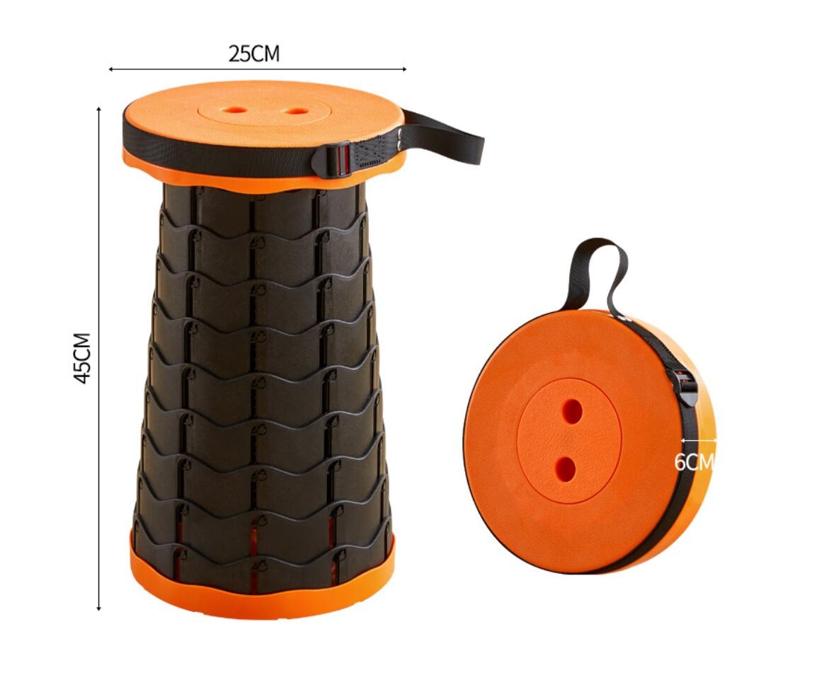 Den justerbara teleskopiska designen gör att du kan ställa in höjden från 6 cm till 45 cm, vilket gör den lämplig för både barn och vuxna. När den är hopfälld är den endast 6 cm hög och 25 cm i diameter, vilket gör den enkel att bära med sig i en väska eller över axeln med den medföljande justerbara remmen.