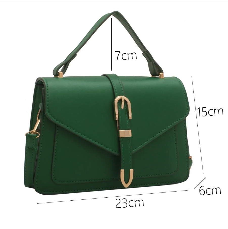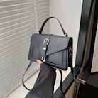 Handväska med retrodesign som passar enkelt till alla outfits, perfekt för jobbet, dejten eller festen. Väskan har hasp- och magnetstägning som ger extra säkerhet för dina saker. Den har ett huvudfack som rymmer mobiltelefon, plånbok, läppstift, kort, smink och nycklar samtidigt som den är lätt och smidig. Handväskan är tillverkad i mjukt veganskt läder - inga djur har skadats och materialet är miljövänligt. Slitstark polyesterfoder, snygga sömmar och guldfärgade spännen gör väskan både hållbar och elegant.