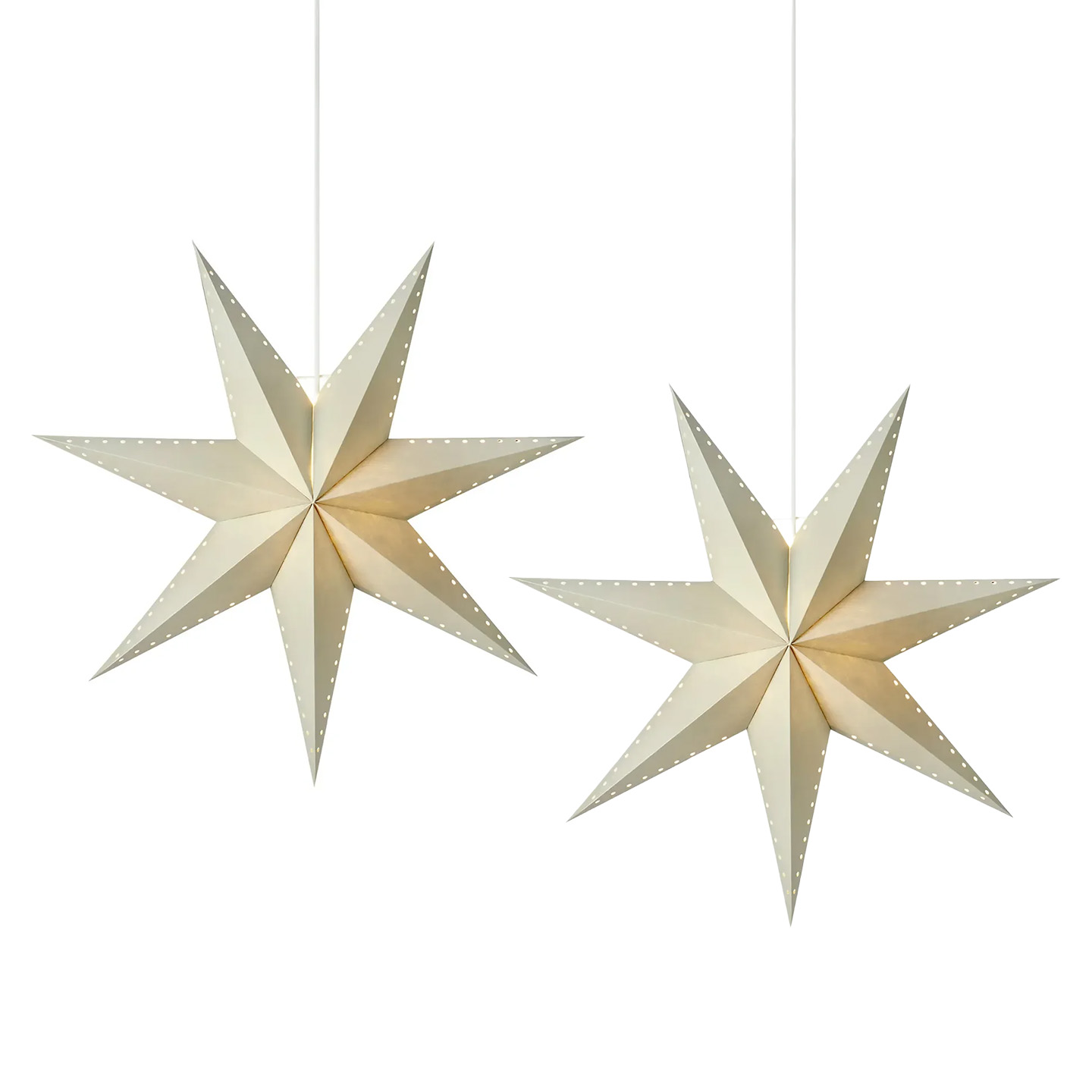 En tidlös julstjärna i grått papper som sprider ett mjukt och stämningsfullt ljus. De små dekorativa hålen längs kanterna låter ljuset sila ut på ett vackert sätt och skapar en varm atmosfär i rummet. Stjärnan har en diameter 60 cm och levereras i 2-pack.