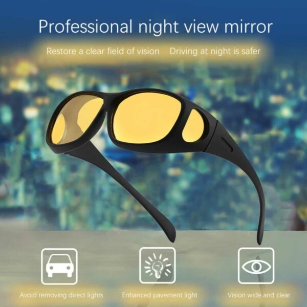 - Gult “night-vision”-glas ger bättre sikt vid mörkerkörning och dåliga ljusförhållanden.