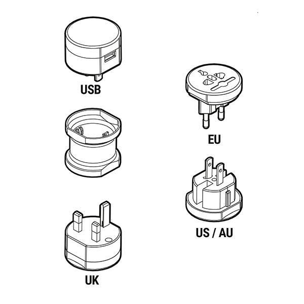 En komplett och mångsidig universaladapter. Perfekt för resor och för problemfri användning av elektriska apparater i många länder. Inkluderar även USB-anslutning. Den kompakta och löstagbara designen tar mycket lite utrymme och är väldigt bekväm och praktisk att ta med var som helst. Denna adapter kan användas i över 150 länder (utom Sydafrika).