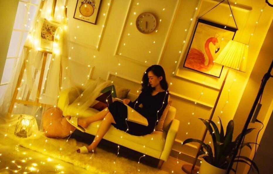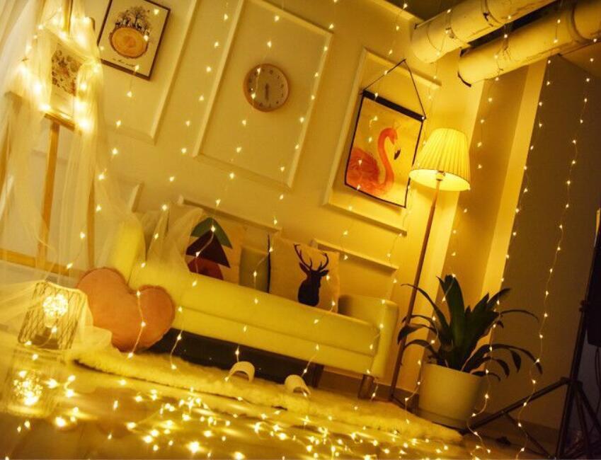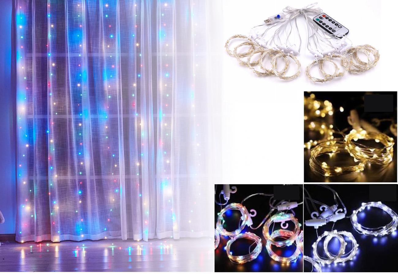 - Täcker fönstret med vacker LED-ridå