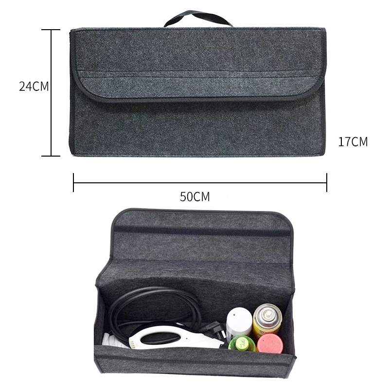 Hopvikbar förvaringsbox för bilens bagageutrymme. Lägg ned filtar, verktyg eller annat för att få mer utrymme och ett bättre organiserat bagage i bilen. Den är gjort i mjukt material som står stabilt utan att halka omkring medan bilen körs.