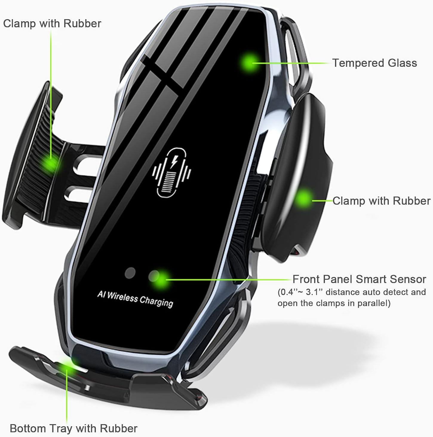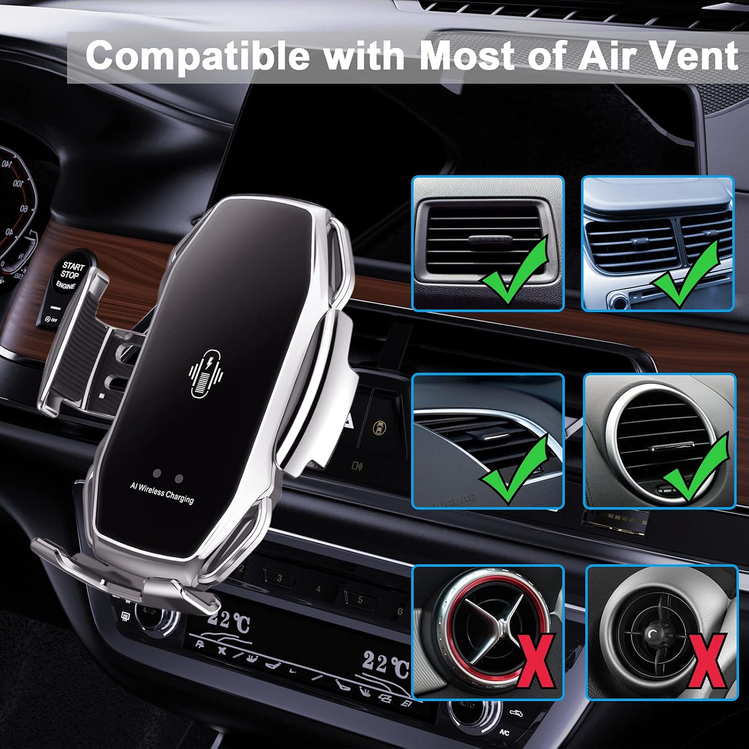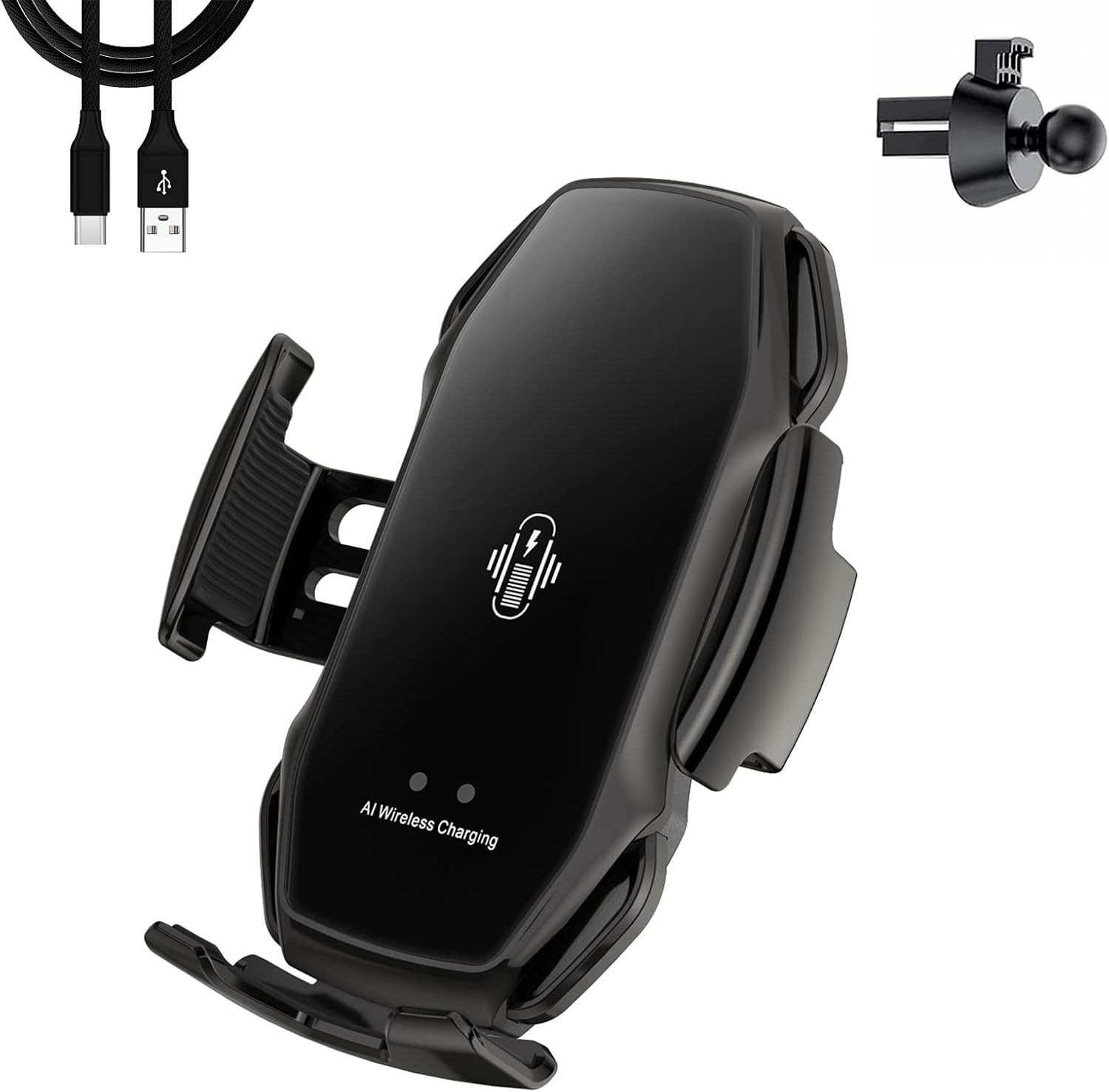 Den trådlösa billaddaren kombinerar snabb trådlös laddning med ett mobilfäste i en och samma produkt. Den erbjuder en komplett lösning för både laddning och stabil placering av telefonen under bilfärd.
