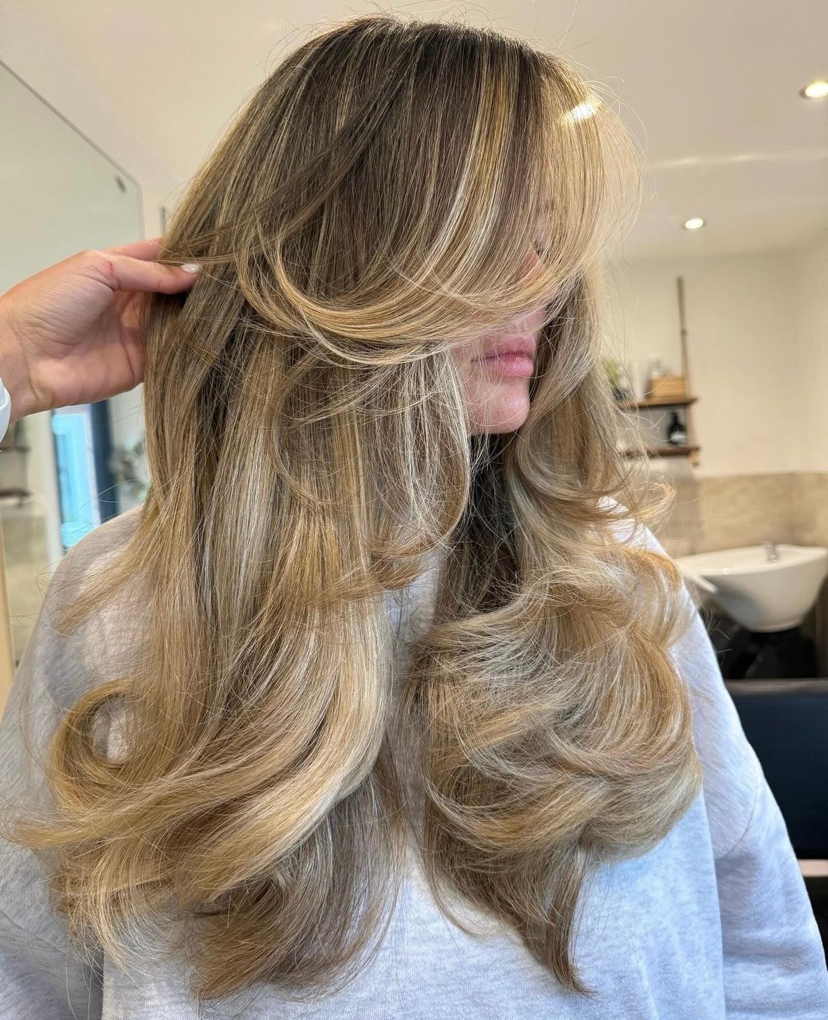 Klipp och balayage med olaplex för långt tunt hår