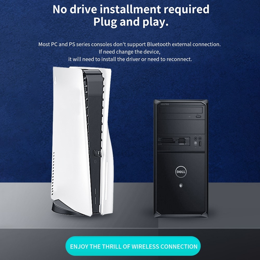 - Passar till Sony PS5 PS4 PC hörlurar Bluetooth USB 3,5 mm ljudsändare trådlös mottagare