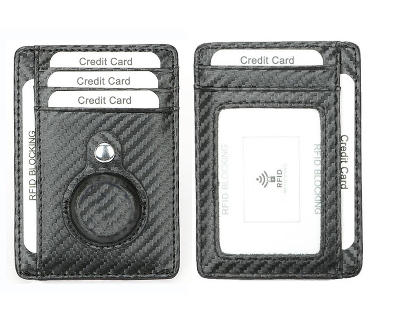 Vår 'KarbonFinder Wallet' kombinerar elegans med praktisk funktion. Denna slanka plånbok har ett integrerat fodral endast för AirTag, vilket gör att du kan spåra plånboken när som helst med din