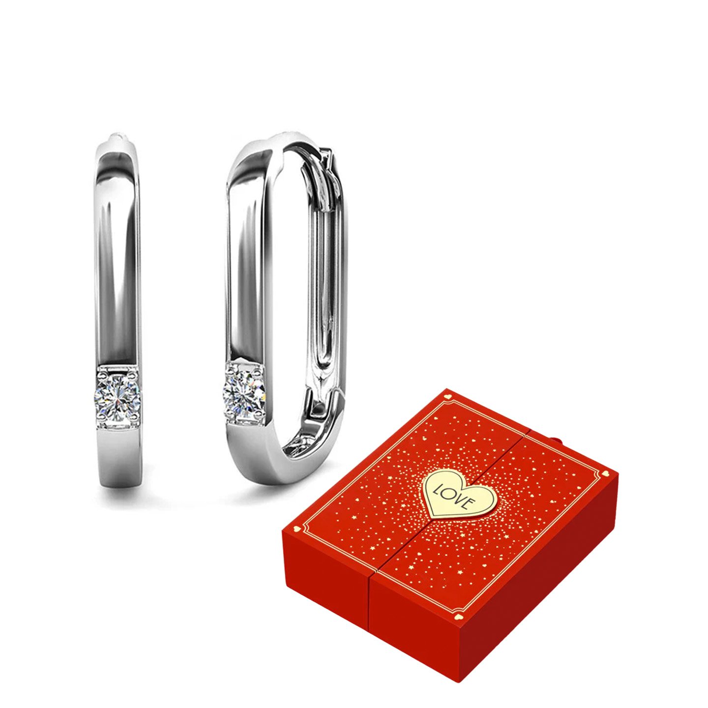 Dessa tidlösa örhängen i 925 sterlingsilver med 18K vitguldplätering och gnistrande briljantslipad moissanite passar lika bra till vardags som till fest. En perfekt gåva till någon du tycker om. Välj mellan en klassisk svart presentask eller en exklusiv Red Love-presentask som vecklas ut till ett hjärta när den öppnas, tillsammans med en matchande presentpåse i samma kärlekstema.