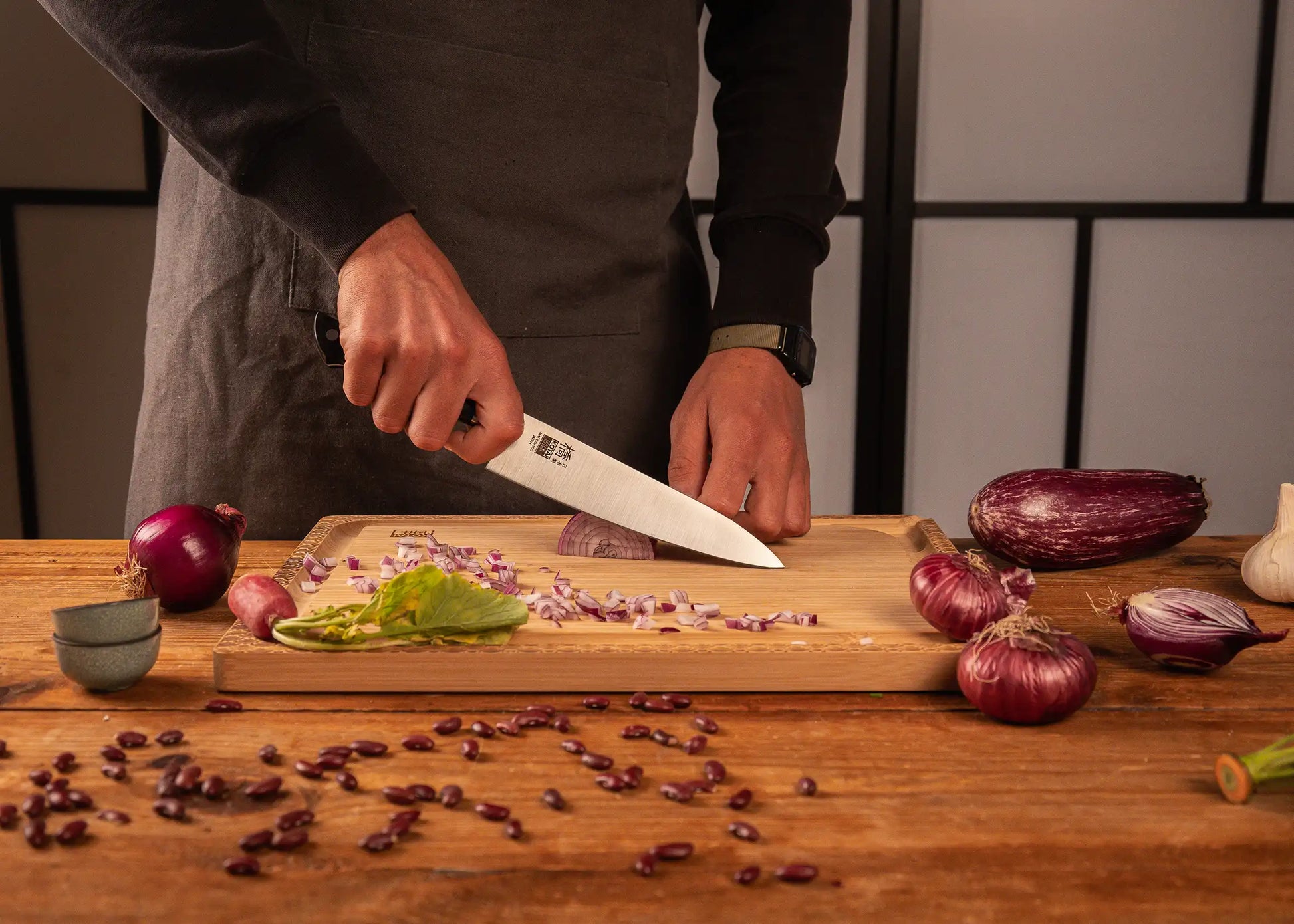 Gyuto (牛刀) är den japanska motsvarigheten till en kockkniv – smidig, välbalanserad och med ett bekvämt grepp. Den passar utmärkt till det mesta i köket, förutom ben och frysta råvaror.