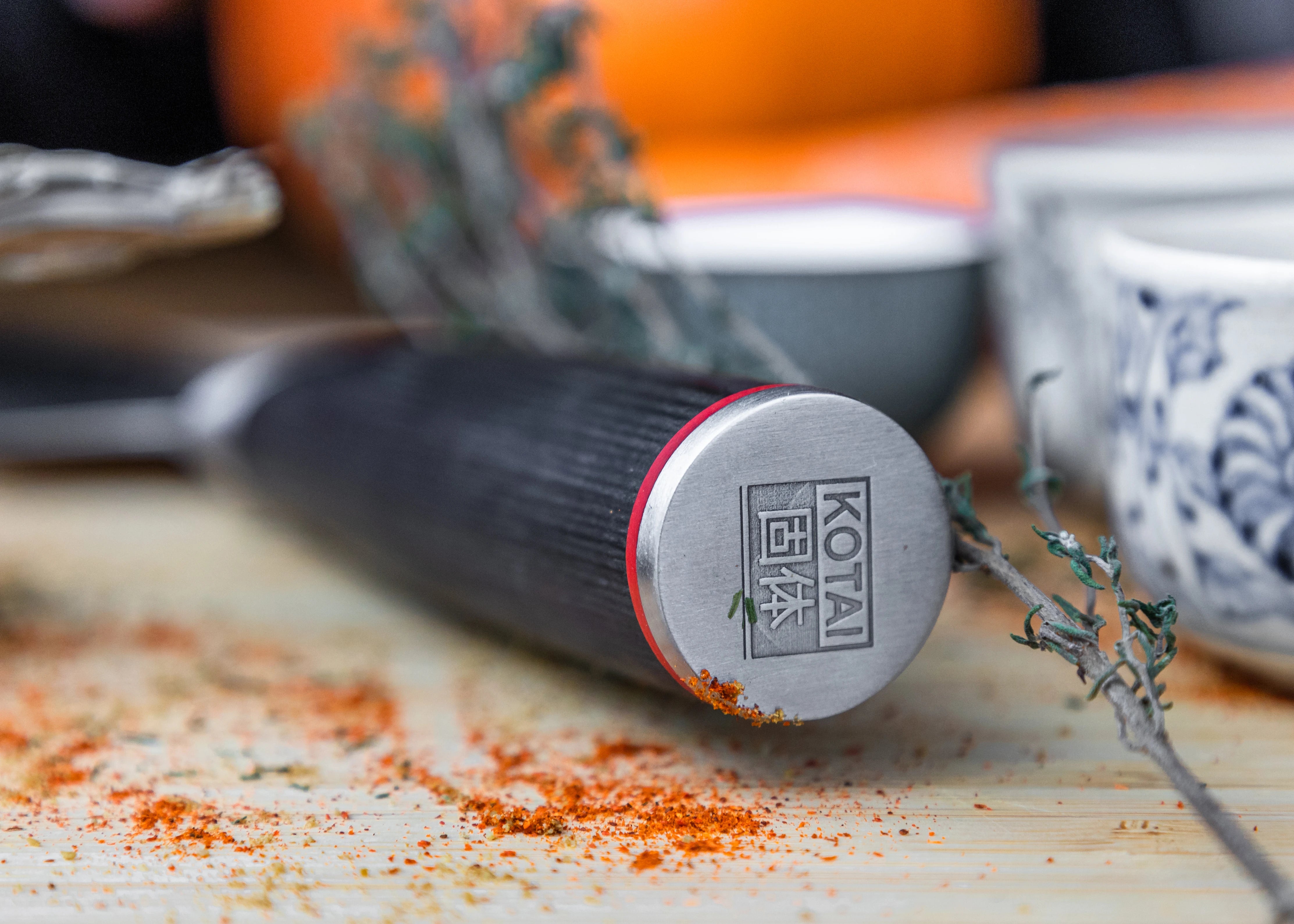 Dold full tang - KOTAI-blad sträcker sig hela vägen till botten av handtaget - för överlägsen hållbarhet och balans."