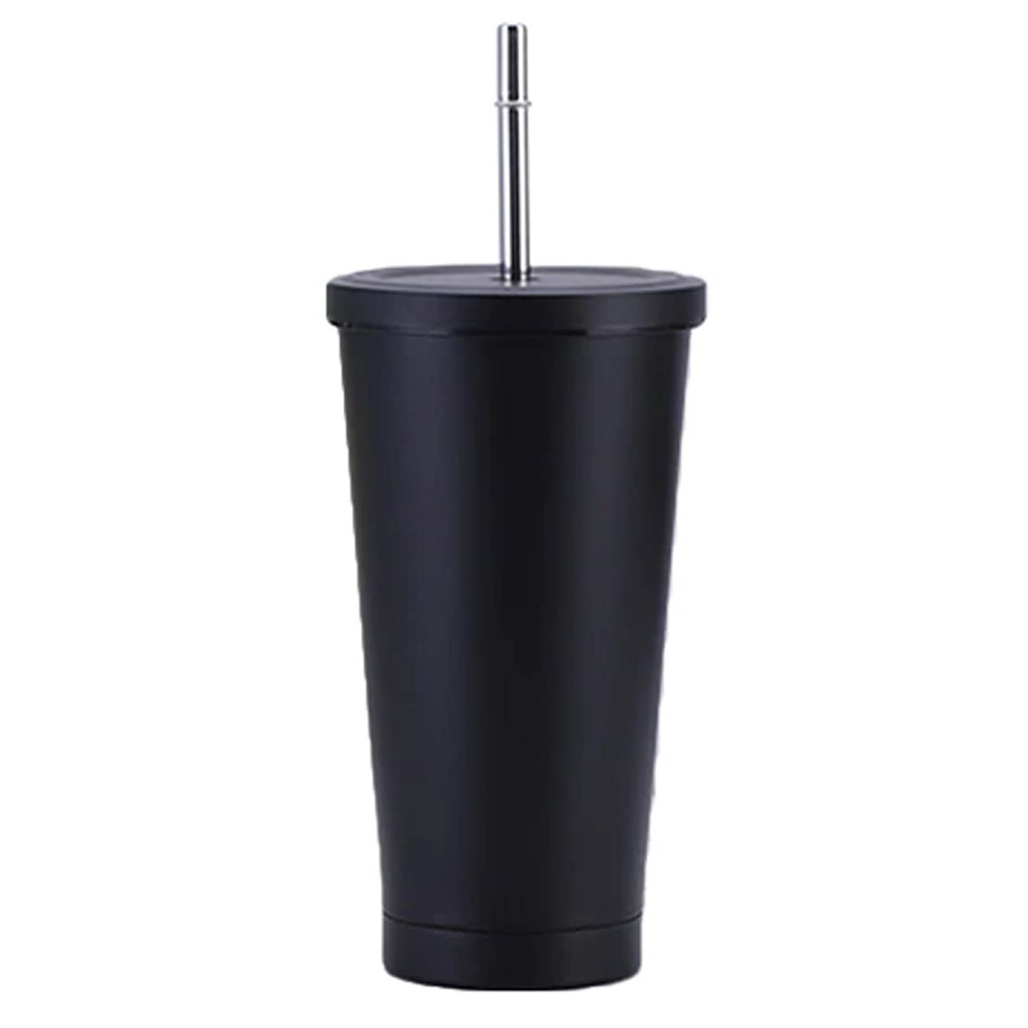 Mugg i rostfritt stål i greppvänlig design med tillhörande sugrör. Koppen kan hålla varma eller kalla drycker tempererade i 6 timmar. Perfekt för längre och kortare bilturer eller för varma dagar utomhus. Miljövänligt material som är lätt att rengöra.