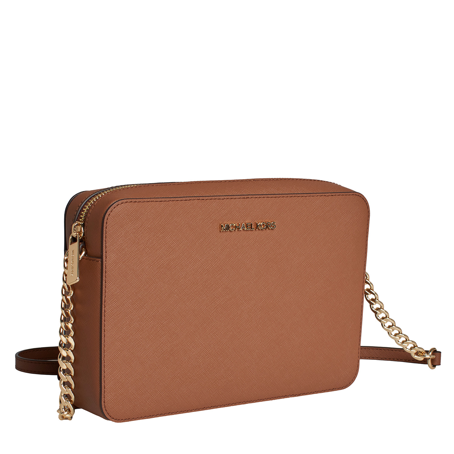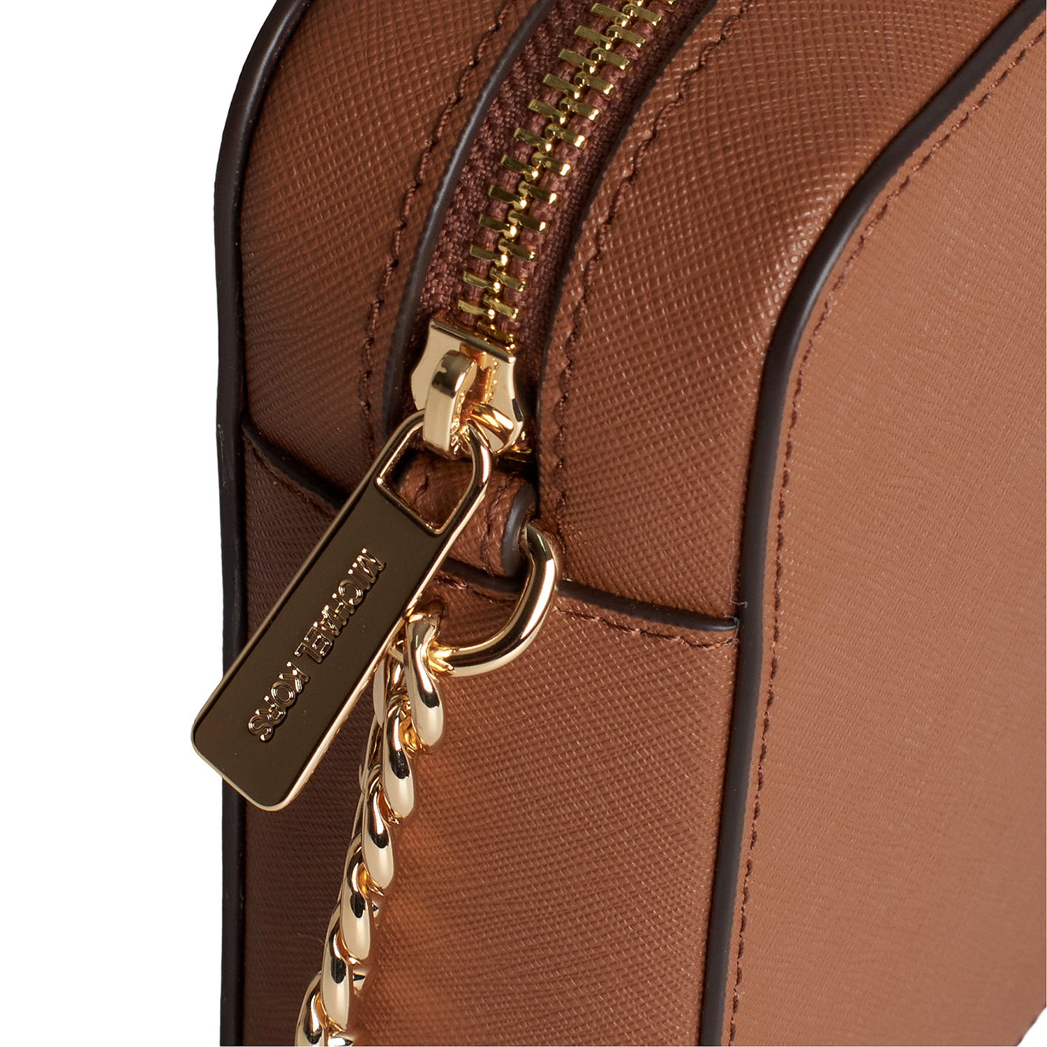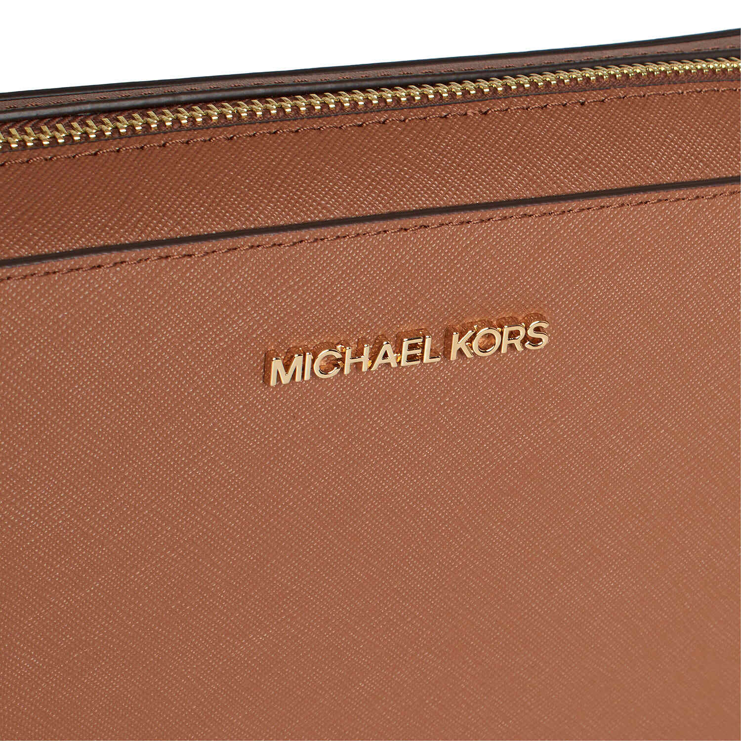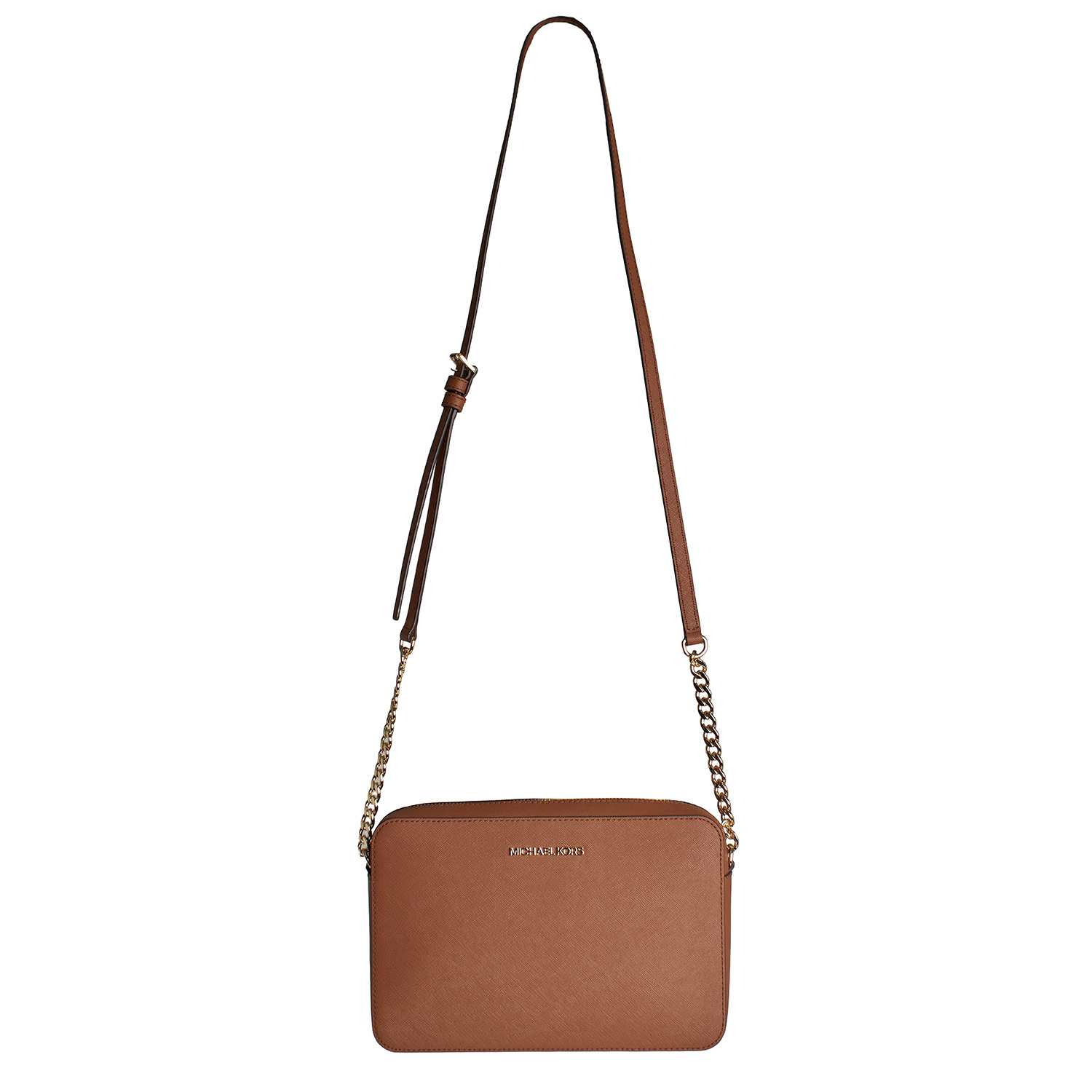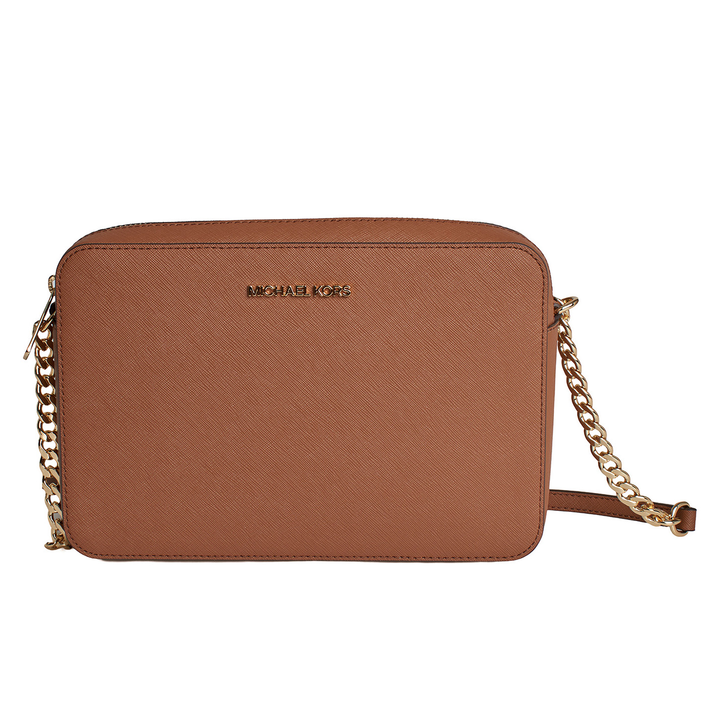 Denna axelväska från Michael Kors är en stilren klassiker med strukturerad silhuett och genomtänkta detaljer. Tillverkad i tåligt PU- och saffianoläder med gyllene metalldetaljer samt en justerbar axelrem som gör den bekväm att bära både till vardags och vid finare tillfällen.