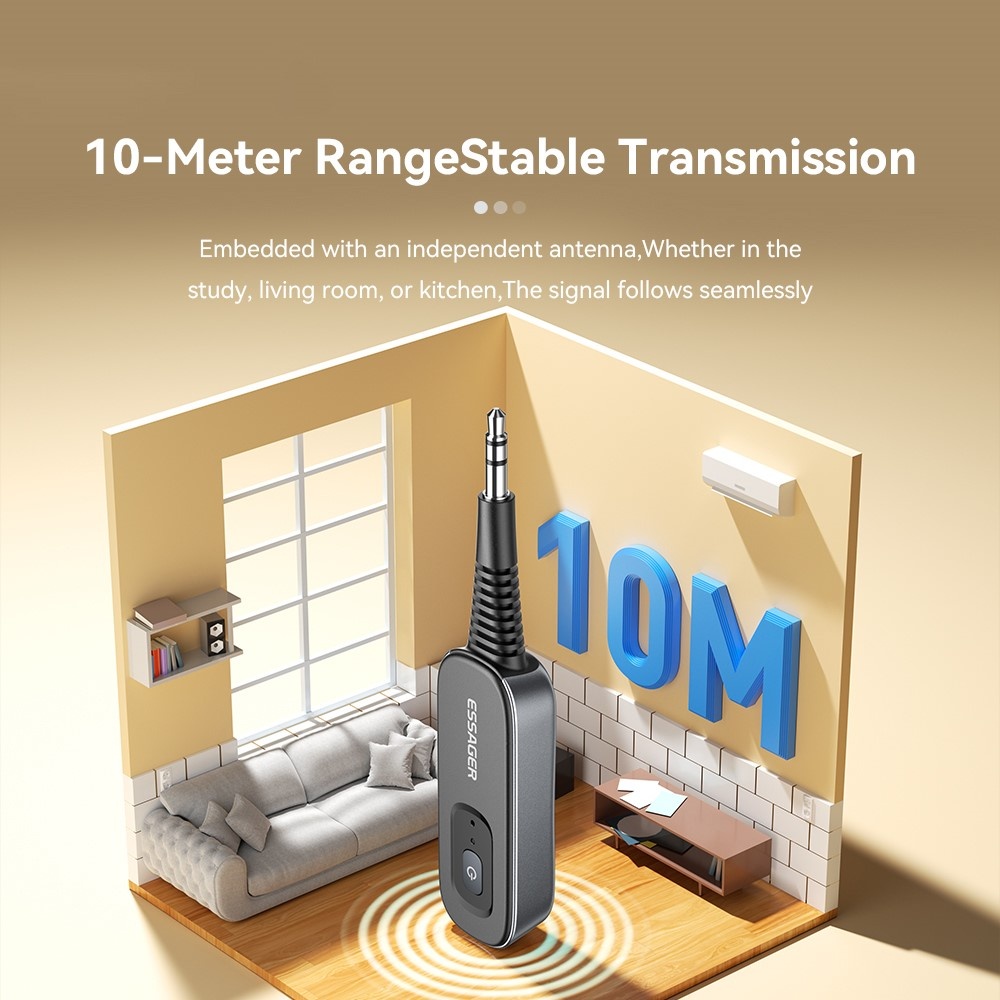 Bärbar storlek: Denna kompakta, lätta adapter är perfekt för användning på språng. Oavsett om du sitter i en bil eller hemma, kan du enkelt ansluta och njuta av ditt ljudinnehåll trådlöst