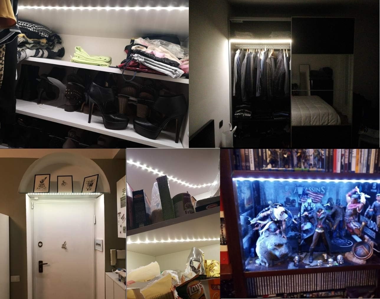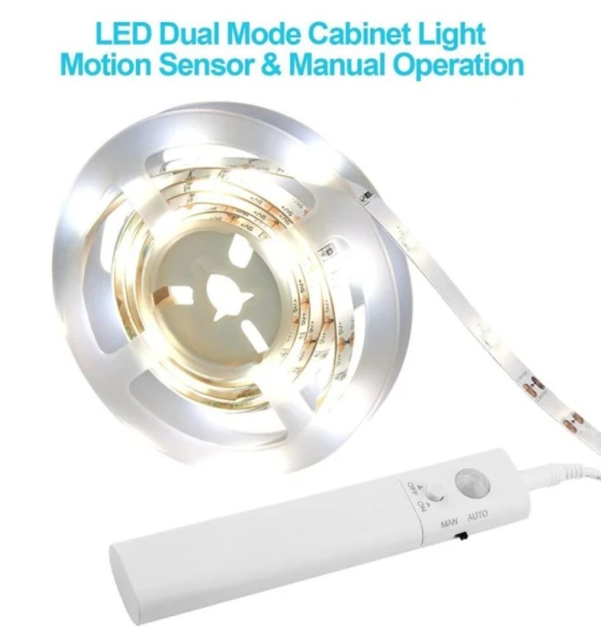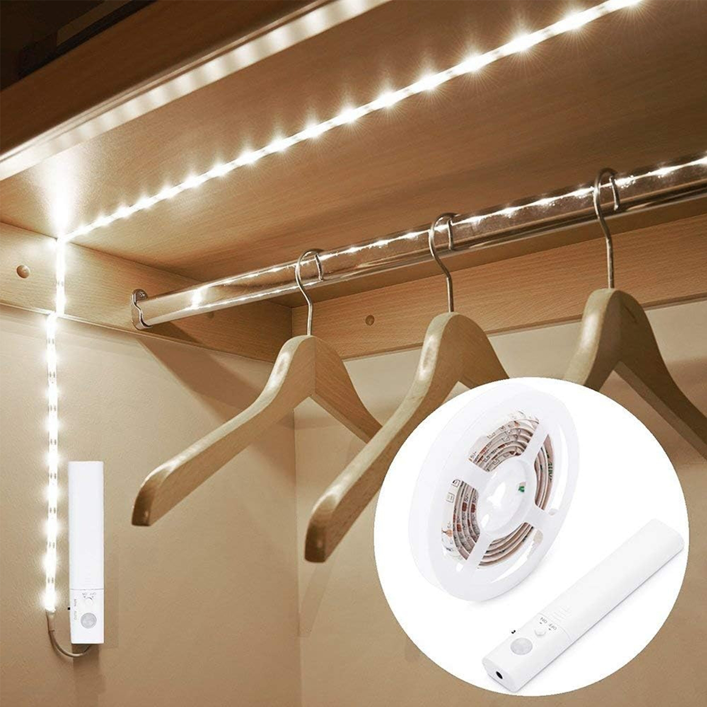 Praktisk LED-belysning som lyser upp garderoben när det är mörkt i sovrummet. LED-listen är även perfekt för köksluckor eller liknande användningsområden. Med en rörelsesensor tänds ljuset automatiskt när du öppnar garderobsdörren eller köksluckan. LED-remsan och den medföljande fjärrkontrollen monteras enkelt med självhäftande tejp på valfri yta. Drivs av 4x AAA-batterier (ingår ej), vilket eliminerar behovet av strömanslutning och kablar.