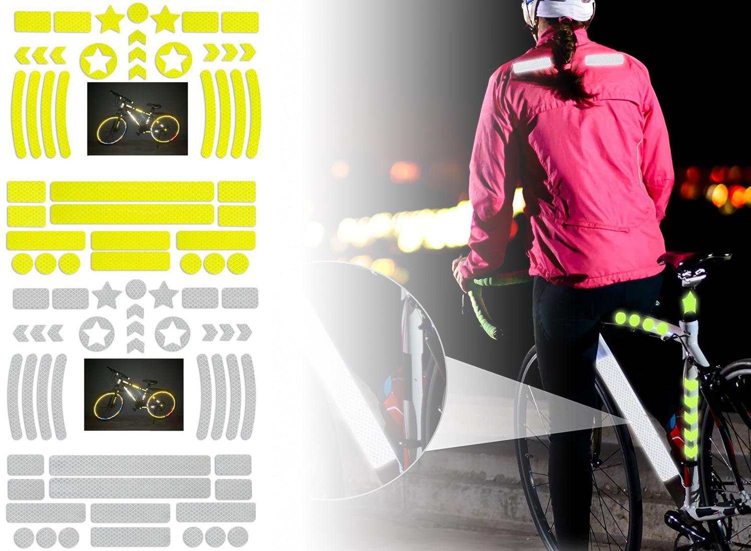 Klistermärkenas starkt reflekterande yta får dig att synas bättre på upp till över 100 meters avstånd och är lämpliga att sätta på cykeln, cykelhjälmen, resväskan, väskan, rullstolen, rollatorn, barnvagnen eller på andra fasta objekt som till exempel din brevlåda.