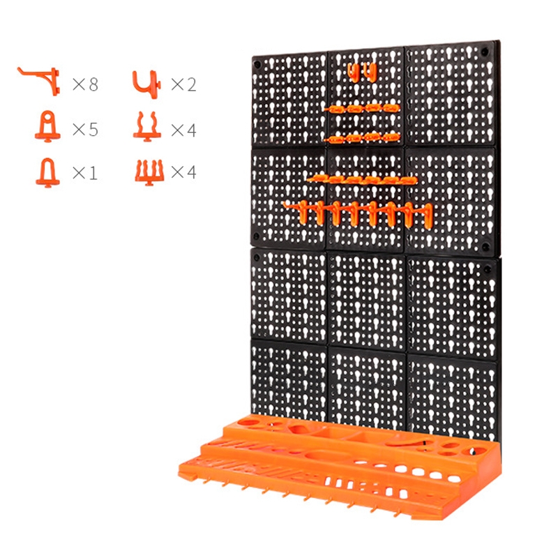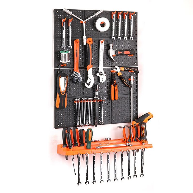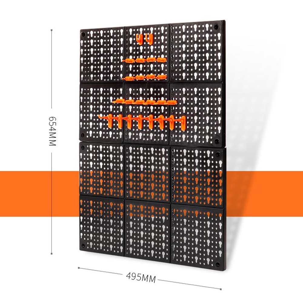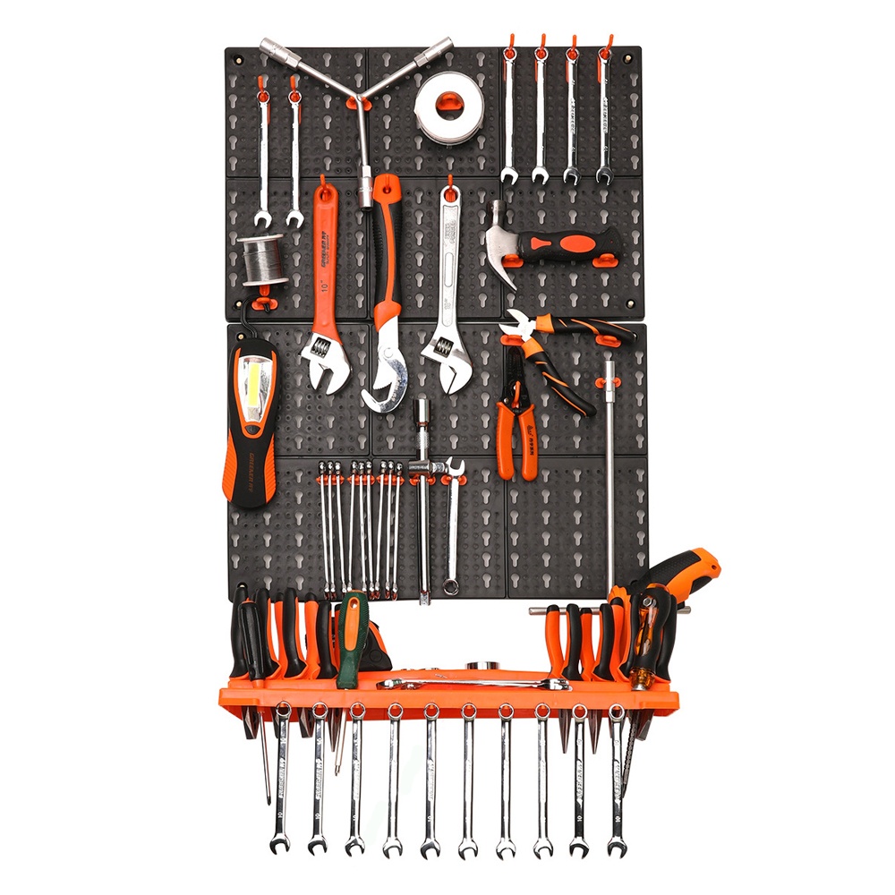 Verktygstavla för väggmontering. Tillverkad i hållbar ABS-plast. 24 olika fästen som enkelt sätts på plats och flyttas efter behov medföljer. Organiserar verktygen och gör dem lättillgängliga.
