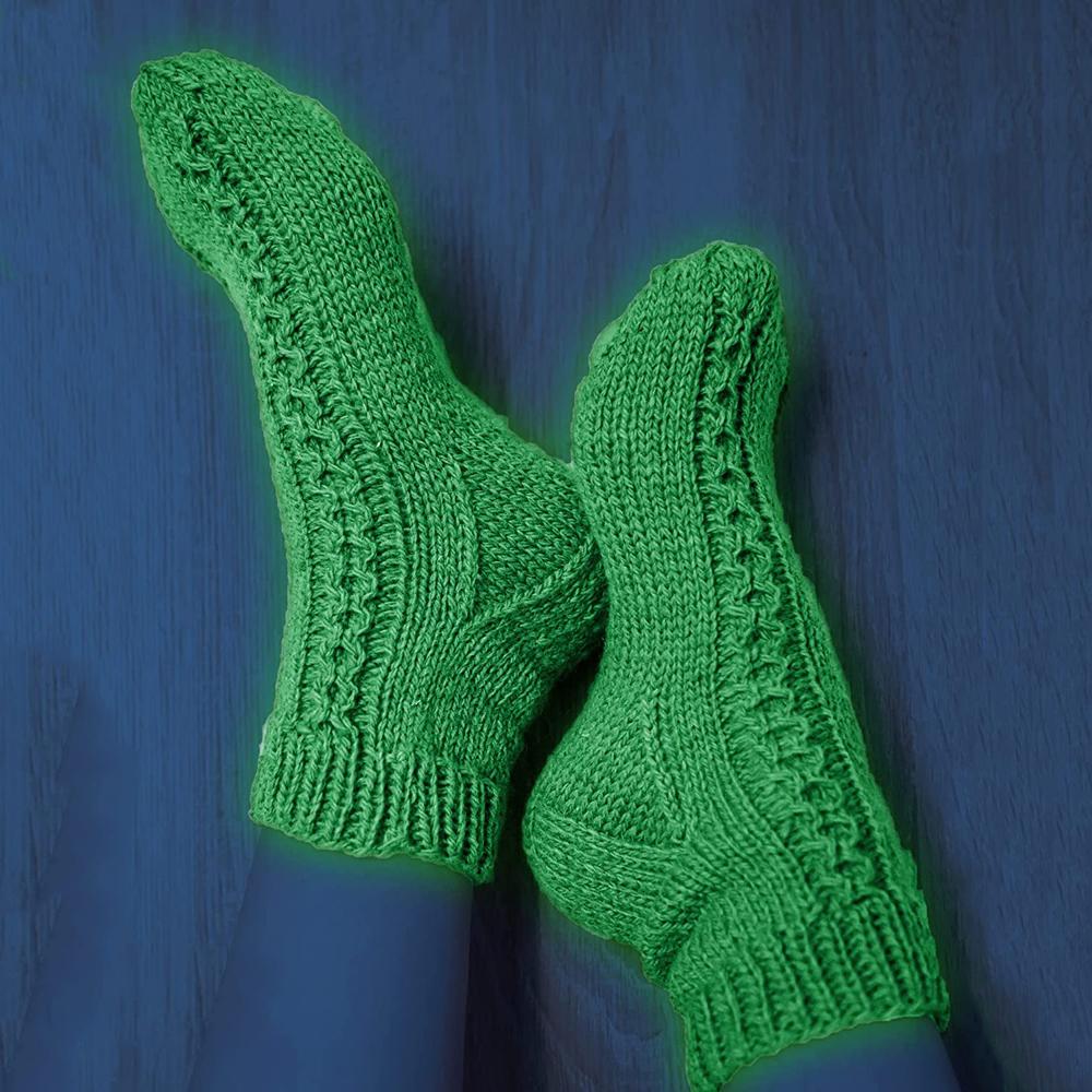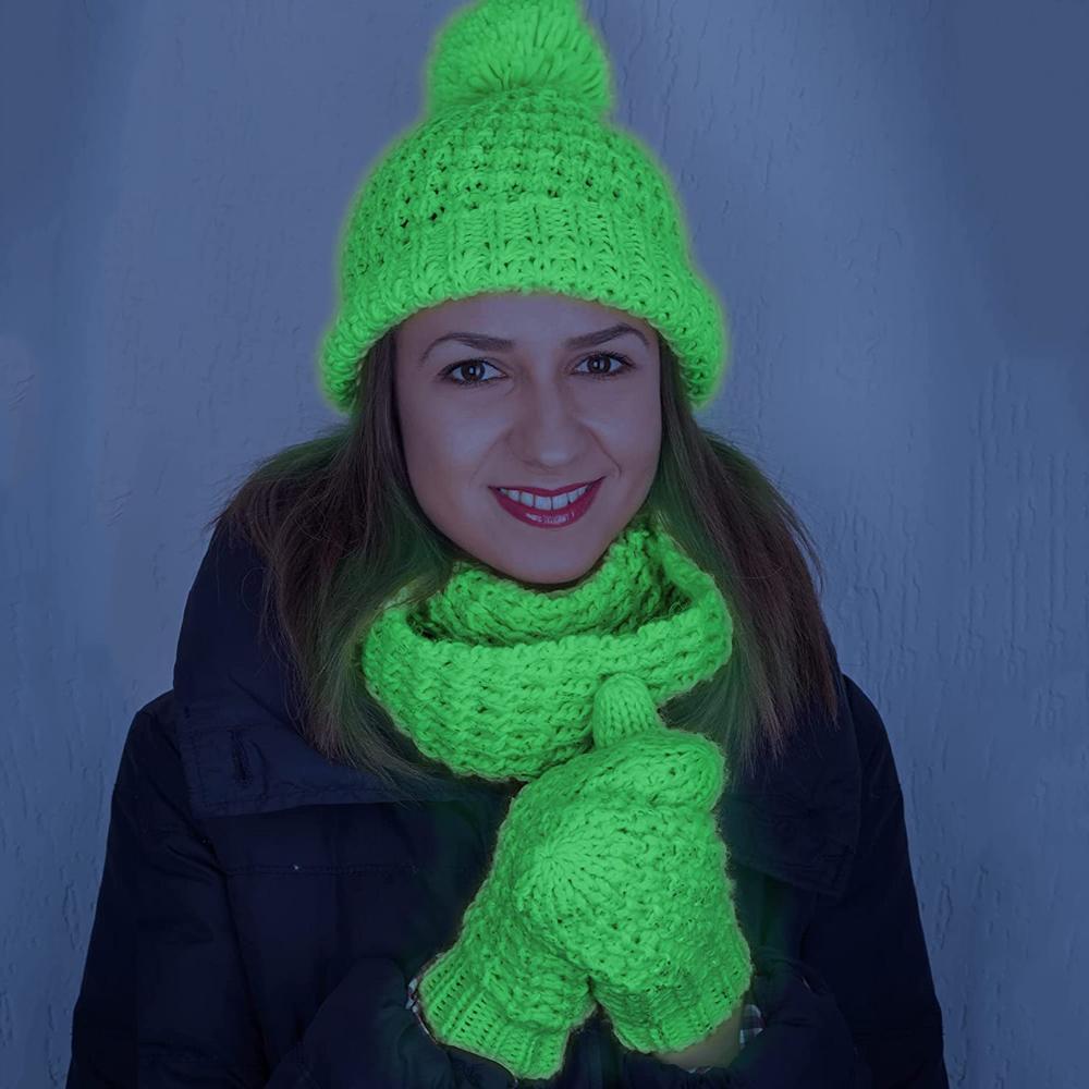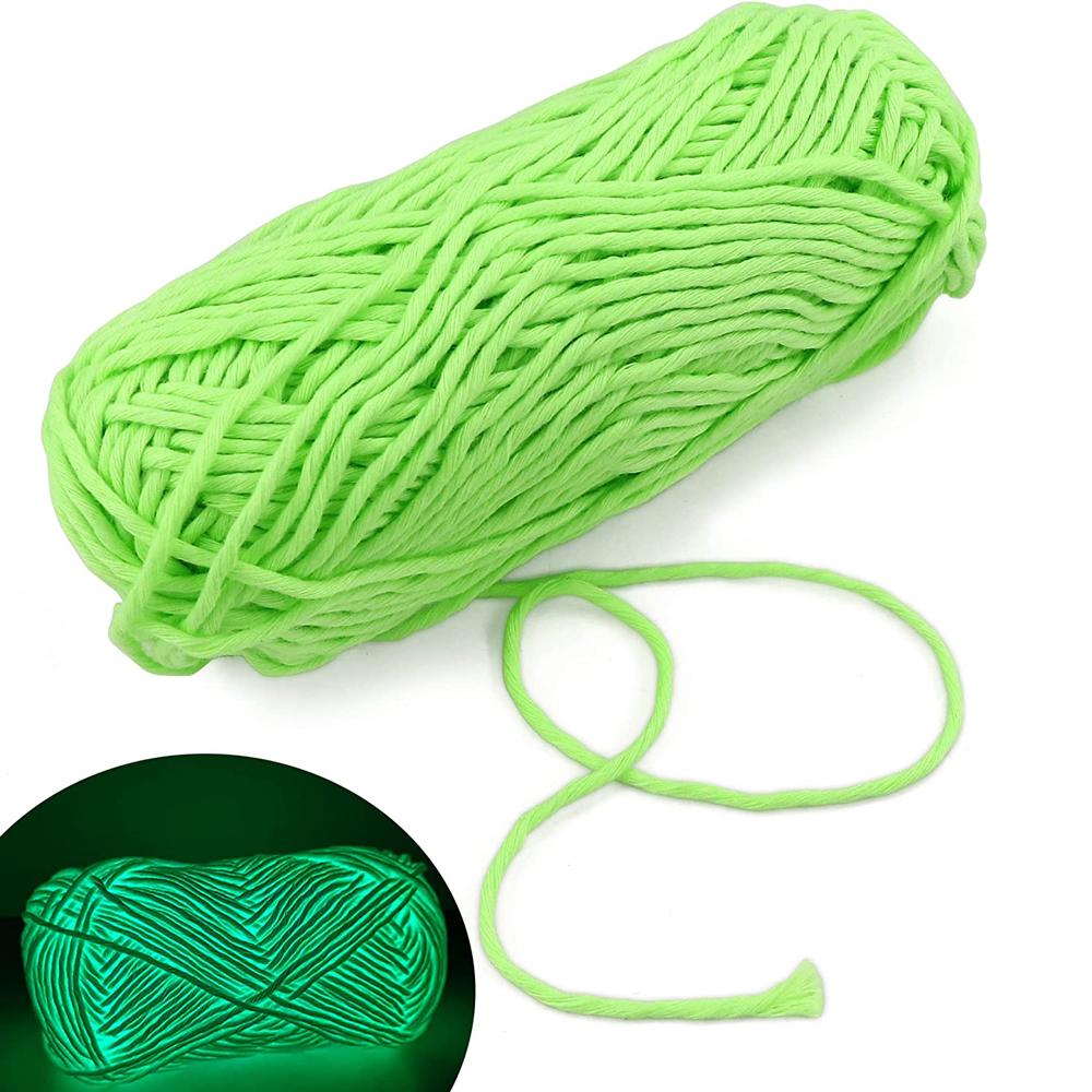 Självlysande garn för stickning och virkning. Garnet är helt i polyester och behöver vara i ljus innan det lyser i mörkret.