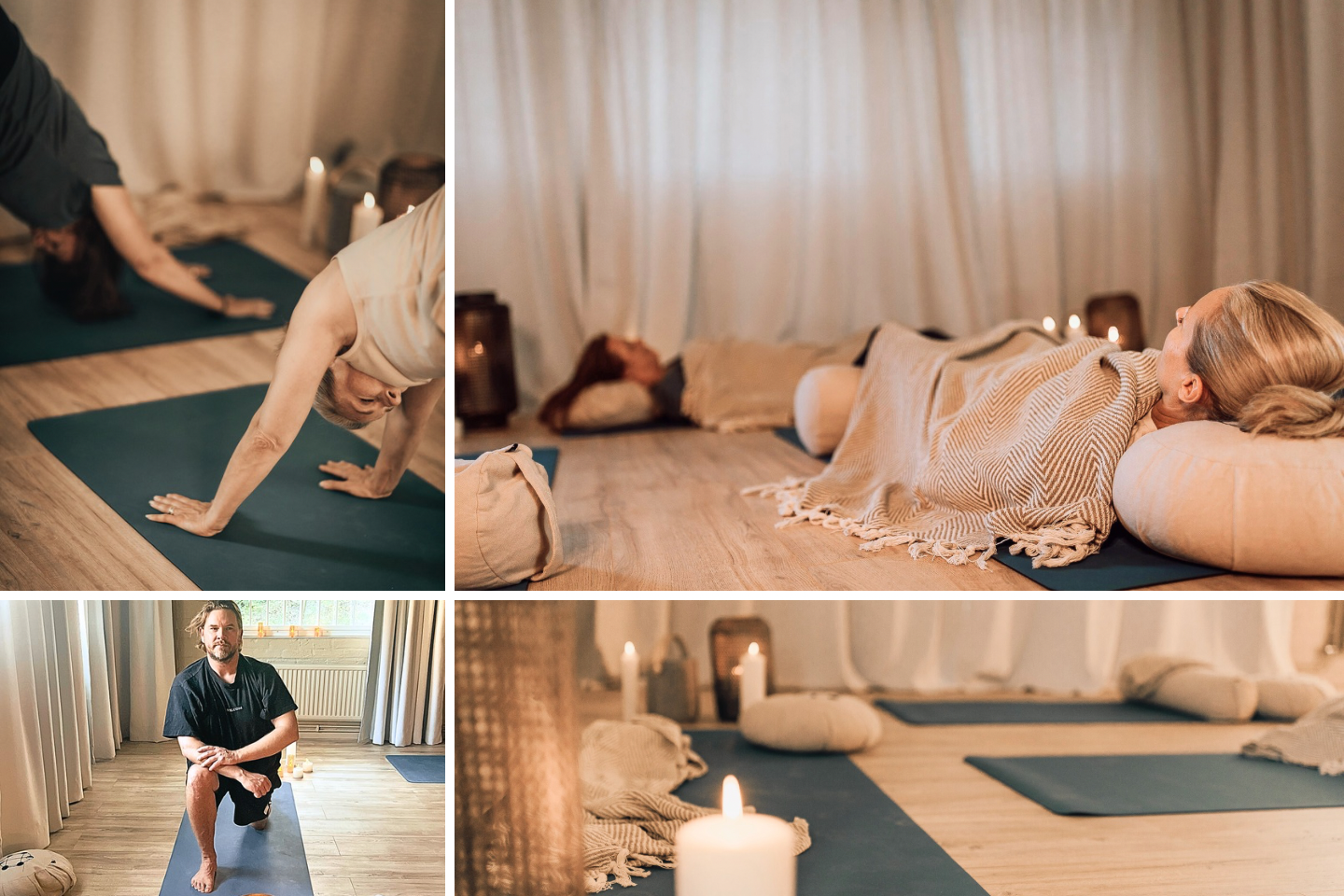Yinyoga, hathayoga, sensingyoga funktionell träning, lymfyoga, triggerpunktsmassage, Qigong, meditation, andning och yoganidra.