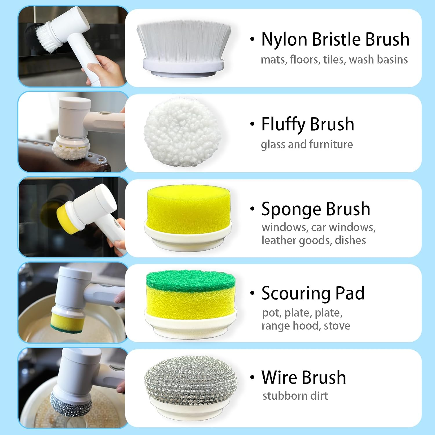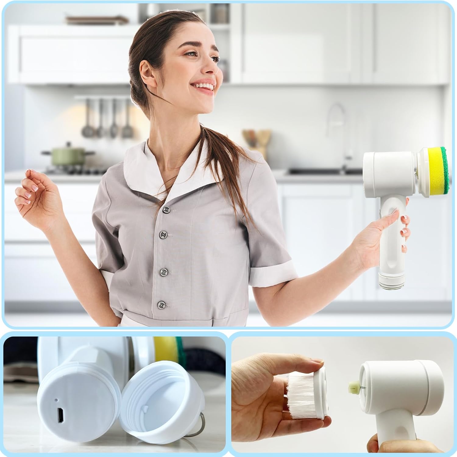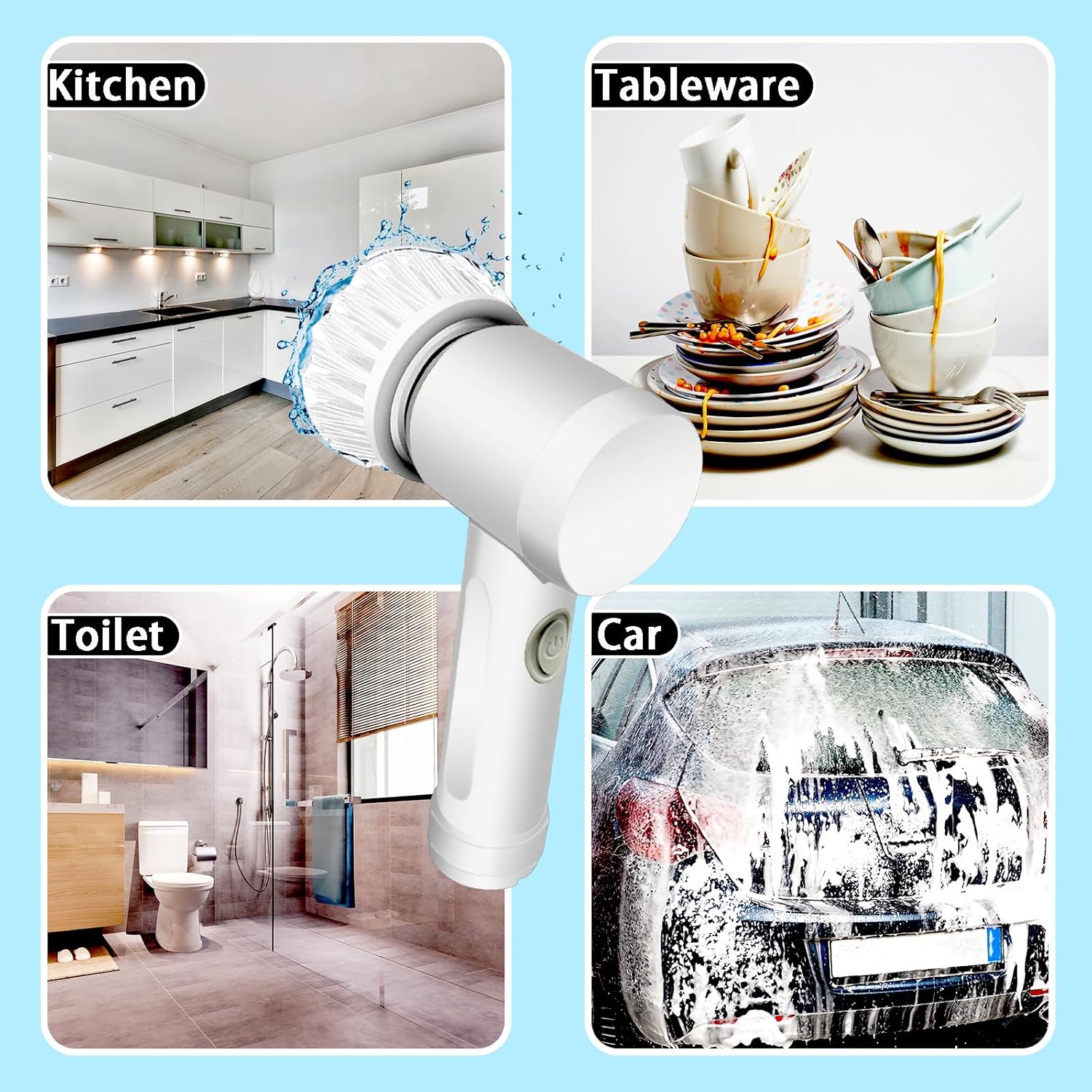 Gör rengöringen enklare med den elektriska rengöringsborsten! Den levereras med 5 utbytbara borsthuvuden för allt från hårda ytor till skonsam polering. Den är sladdlös, laddas via USB och har lång batteritid. Ett praktiskt väggfäste ingår för enkel förvaring.