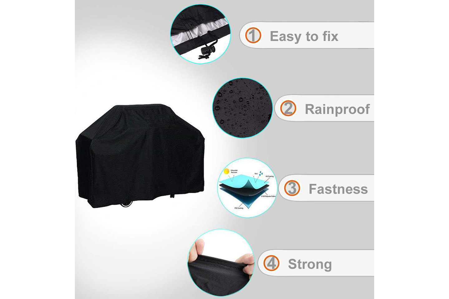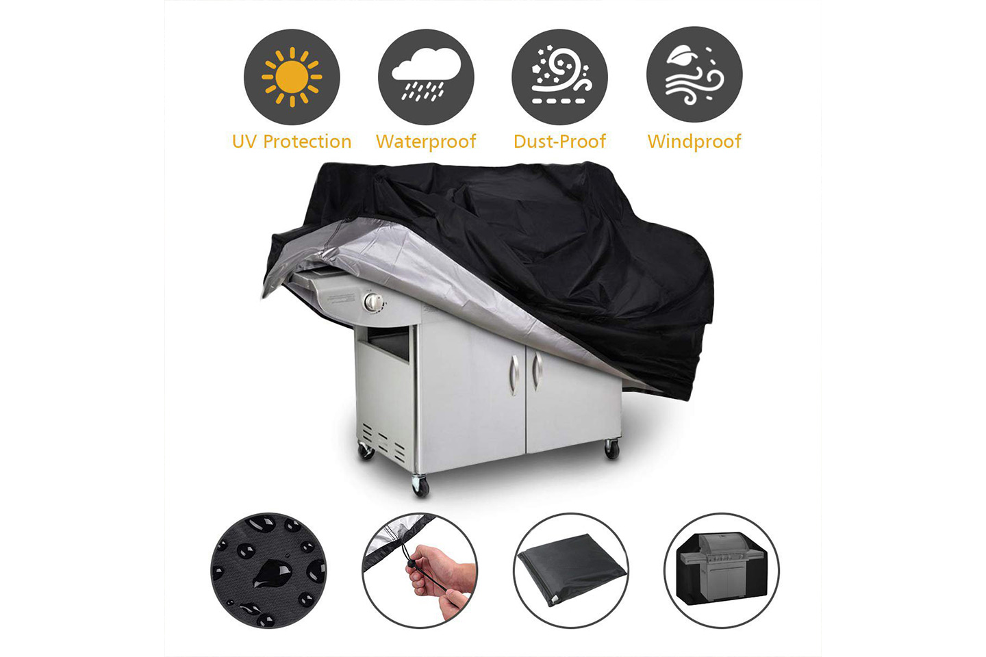 Praktiskt och vattentätt grillöverdrag skyddar grillen från väder och vind.
